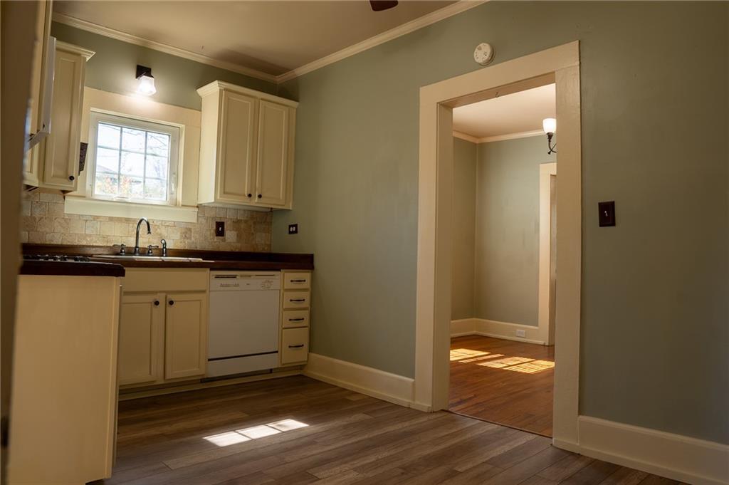 Description: This charming historic bungalow near downtown Opelika offers character and comfort. Its flexible zoning can be used as either residential or commercial. Start your mornings with coffee on the inviting screened-in side porch. Inside, the cozy living room features a fireplace that adds warmth and charm to the home’s classic style. The updated kitchen features exposed brick and warm butcher block countertops that complement the home’s historic character. Enjoy a full size dining room and a large pantry with swinging saloon style doors! Two bedrooms share an updated hall bathroom with built-in storage for added convenience. The spacious laundry and mudroom provides extra functionality and includes a back door leading to a peaceful backyard garden area. The property also includes a nice metal shop building, along with additional storage space underneath the house. Practical upgrades like windows and plumbing provide peace of mind. This delightful cottage combines timeless charm with practical updates just 4 blocks from the courthouse square in downtown Opelika. Gravel driveway to the right of the house is a shared drive. Seller is a licensed real estate agent in the state of Alabama.