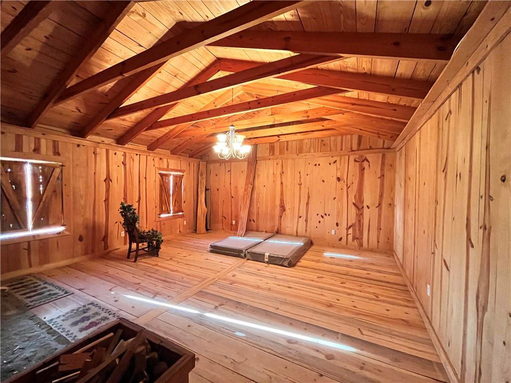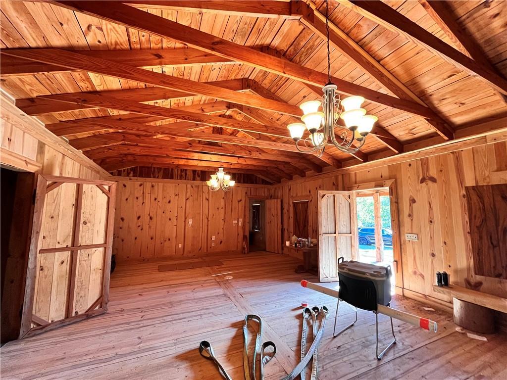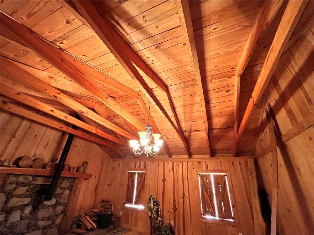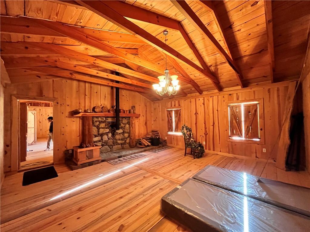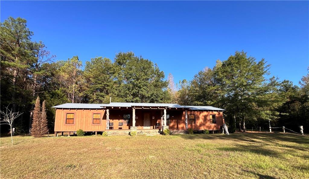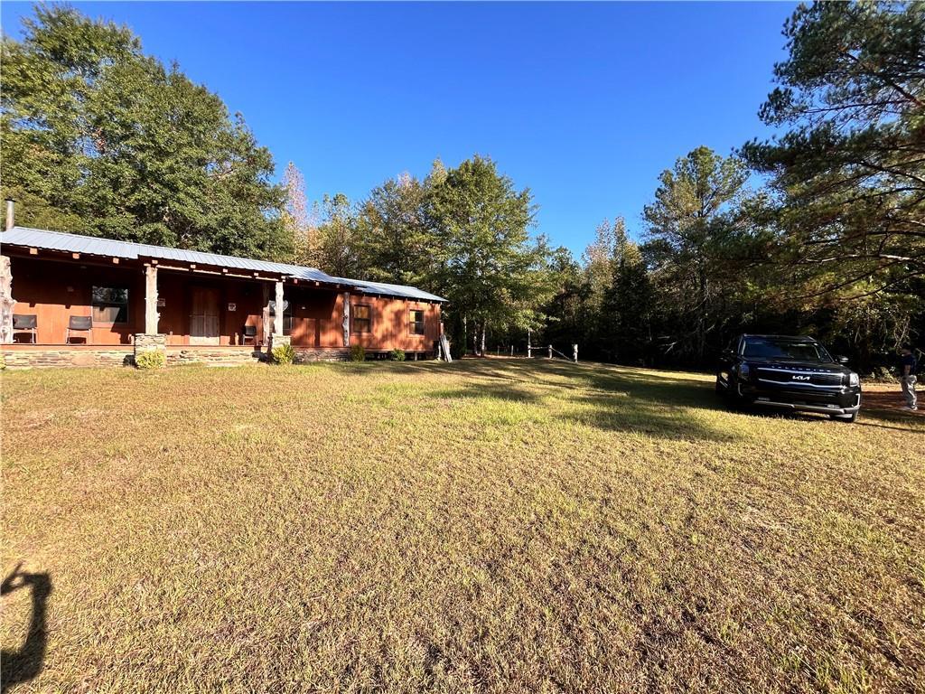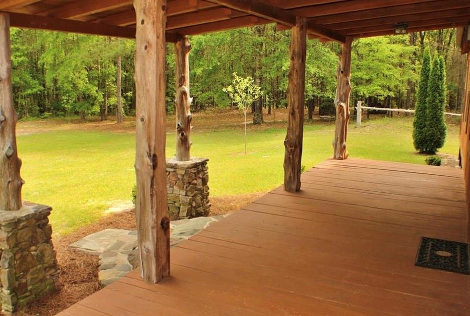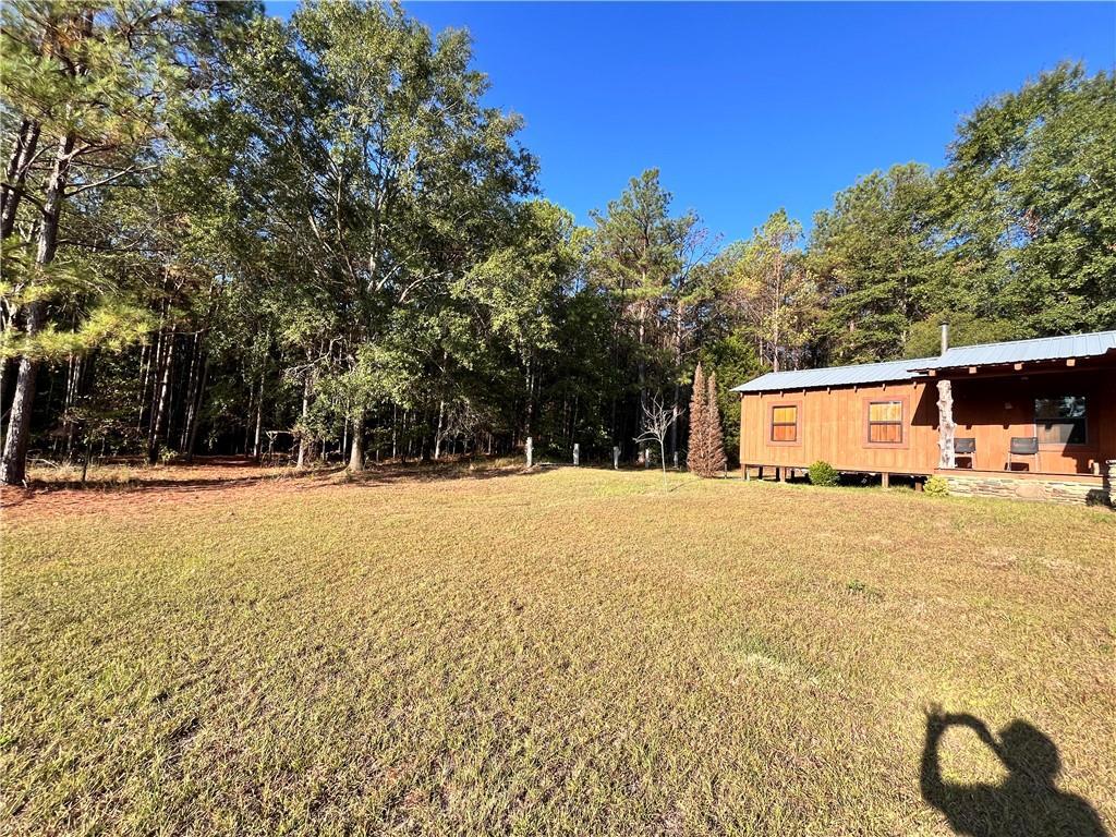 Description: The living area(1,540 sqfr) boast a rock wall with impressive mantle and wood burning fire place. The cabin door hinges are hand-made along with the mantle tools. Every stick of lumber was cut from downed trees on the property from a storm. Timber is mature - Pine, Oak, Poplar, Cedar, Red Maple Dogwood, Sweetgum & Bay, The bathroom is roughed in and ready for our ideas