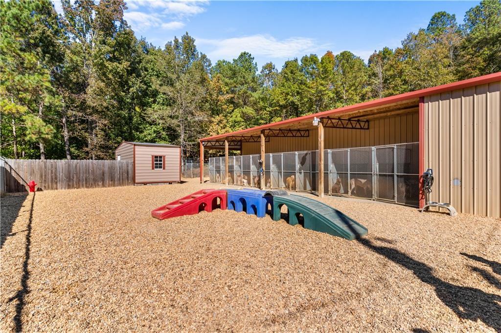 Description: If you are looking for a property, located in one of the fastest growing regions, in the state of Alabama, that is already generating a steady cash flow, with even more opportunity to grow your return on investment, you will want to see this tremendous opportunity in Tallapoosa County, Alabama! Located in close proximity to the shores of beautiful Lake Martin, near the Blue Creek and Stillwaters communities of Dadeville , Alabama, and 30 minutes to the Auburn/Opelika area, this property consists of approximately 67 acres of land with multiple, metal building structures. The land features consist of a mixture of hardwood and pine trees of various age classes, with streams, a powerline easement-that offers great diversification for wildlife, and a diverse topography. One of the buildings is currently being used as a lucrative, dog boarding facility, with plenty of infrastructure and kennel space to expand and meet the community needs of dog care in this thriving area, of Lake Martin and east Tallapoosa County. This could provide a new owner with an immediate return on investment, with a robust clientele and book of business already in place. The property sets up very well to expand this business that is already in place or utilize the space for a new venture. The main building, would make a great gathering space for entertaining guests and family and friends. It features a large open concept with high ceiling, wooden interior wall accents, a kitchenette, plenty of storage space in the form of closets, additional rooms, and a bathroom. It features a commercial size bar, complete with covered outdoor sitting space to entertain many guests. Other possible cash flow business opportunities here could be; an event center that could host weddings, receptions, corporate events and retreats. It could also set up well for RV, Camper, and Cabin sites or boat storage. It would also make a great location to have a thriving skeet shooting or sporting clays course.