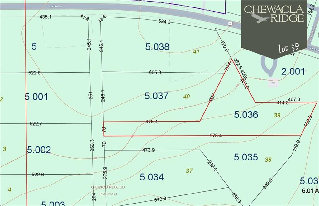 Description: Welcome to Chewacla Ridge, a new estate-lot community within Auburn city limits. Thoughtfully designed to preserve the land’s natural beauty, this boutique development features expansive ~3-acre homesites, each offering mature trees, gentle topography, and a true sense of privacy. While just minutes from Auburn’s shopping, dining, and everyday conveniences, the setting feels worlds away—quiet, wooded, and intentionally unhurried. These generous lots provide the freedom to design a custom home that blends seamlessly with its surroundings, where outdoor living, wildlife, and wooded views take center stage. A unique opportunity to enjoy space, serenity, and nature without sacrificing the benefits of city living. Zoned for Auburn Early Ed. Just 2.5 miles to exit 50 with easy access to Auburn University and downtown Auburn.