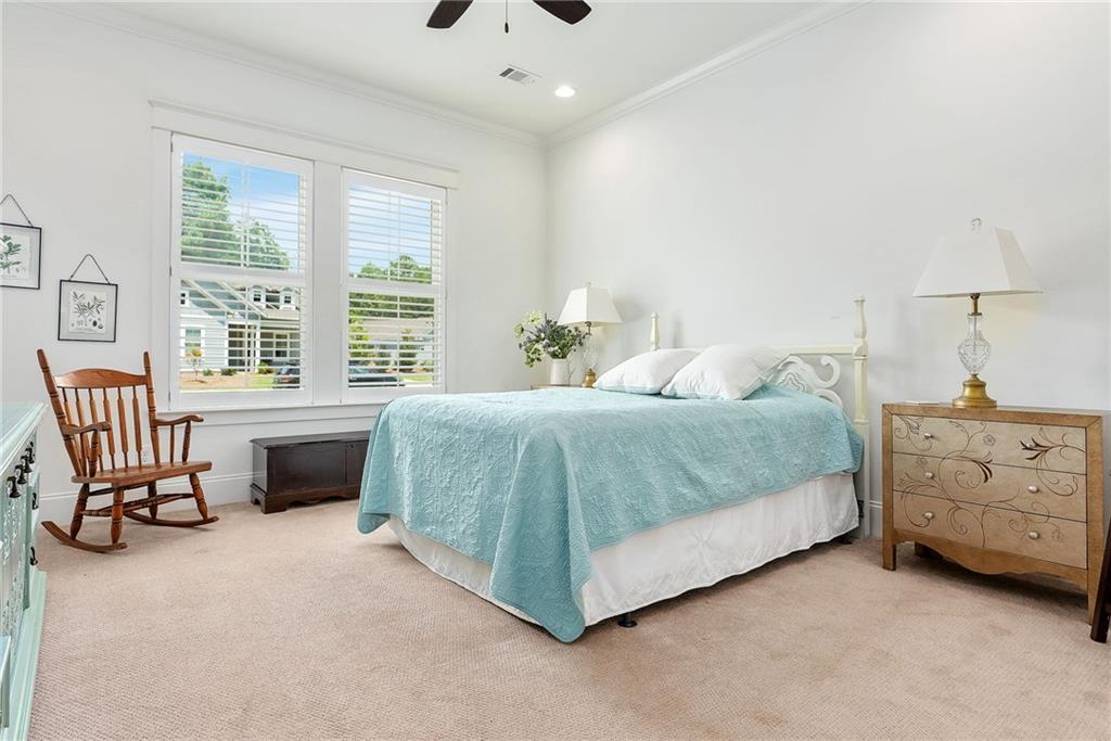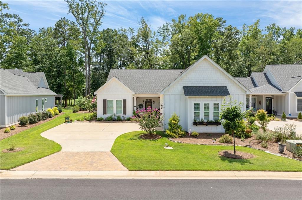 Description: Come for the football game, stay for the world-class golf & spa! National Village offers the best in comfort & convenience as showcased in this move-in ready, immaculate one story, Craftsman-style home. Premium lot w 180° golf course view. No detail overlooked, beautifully appointed w plantation shutters, 12 ft. ceilings, deep crown molding in every room, hardwood floors in main living area. Kitchen features leathered granite counters, triple sink, gas cooktop, undermount lighting, walk in pantry. Living room has lots of natural light, stacked marble fireplace, flanked by designer etageres which remain. Screened in porch overlooks the XL blue stone patio & RTJ golf course! Cottage-style landscaping. HOA provides lawn care, use of Marriott Grand National's resort style pools, dry sauna, exercise rm, clay tennis courts, pickleball courts, wooded nature trails, use of Saugahatchee Lake, complimentary play on short course & unlimited range balls at RTJ. Here, every day feel like vacation!