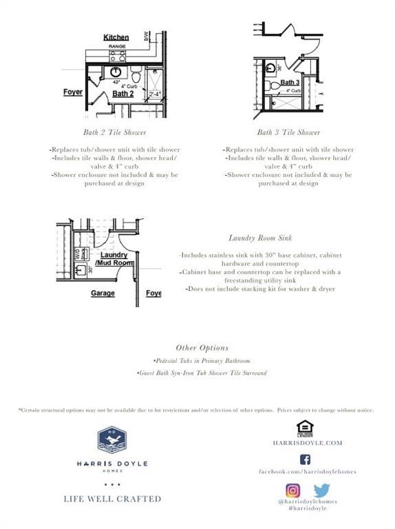 The Griffin floor plan by Harris Doyle Homes is a two story home with the primary bedroom and a secondary bedroom on the main floor. Upstairs you'll find two bedrooms and a full bathroom. Structural options are shown in the listing images.