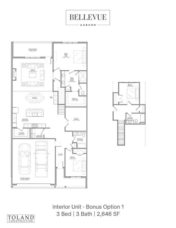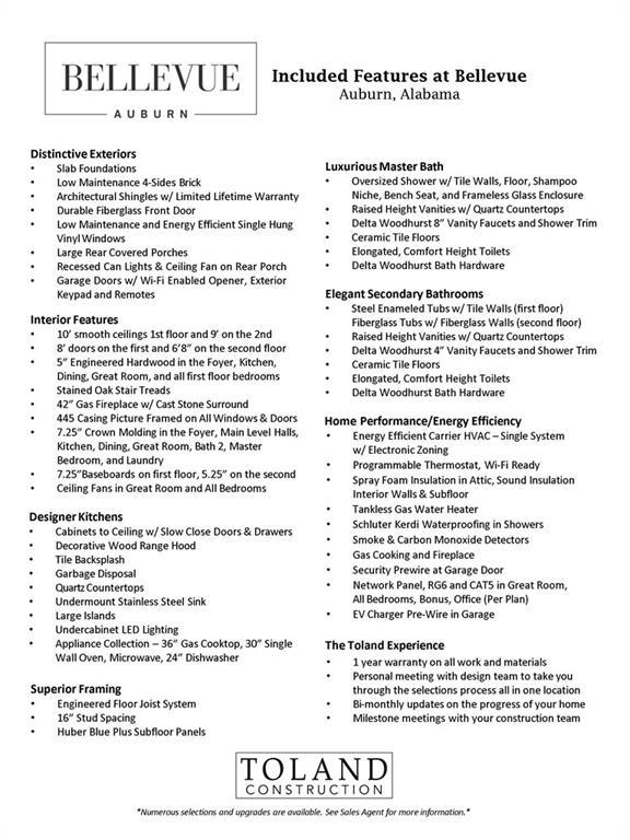 Description: MOVE IN READY! Toland Construction is proud to introduce Bellevue, home to 43 luxury townhomes located in the heart of Moores Mill. Featuring the style and luxury you expect from Toland with the low maintenance lifestyle and convenient location you need! This home features 2 bedrooms, 2 bathrooms, and an office on the main floor and a 3rd bedroom and 3rd bathroom on the second floor. 10' ceilings and hardwood floors throughout the main level, cabinets to the ceiling, butler's pantry, cast stone fireplace, zero entry master shower, extended rear porch with a second fireplace outside...it's all so so good. MUST SEE! 4' aluminum fences are permitted, lawn care maintained as part of HOA. Social Membership Initiation Waiver included to the Moores Mill Club with purchase.
