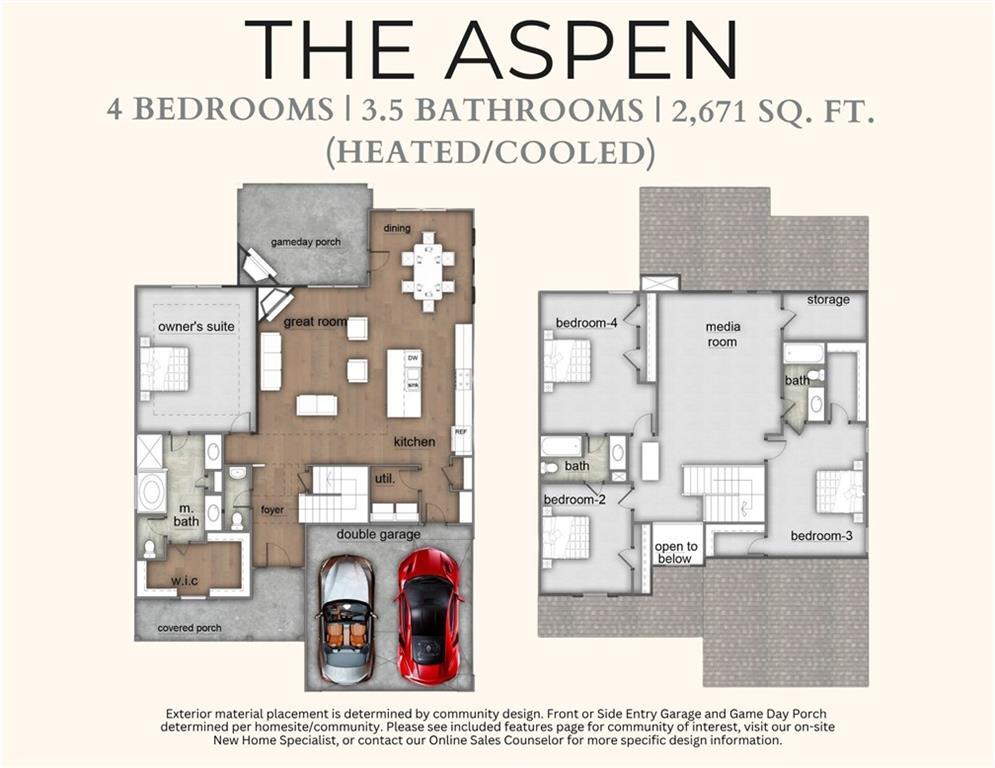 Description: Wyndham Village, a charming Hughston Homes community nestled in Opelika, Alabama. Welcome to our Aspen A floor plan, with 2671 Sq. Ft. of Well-Designed living space, one of our Most Popular plans. Step into the Light-flooded Foyer and feel right at Home. Open Concept with Spacious Great Room w/ Gas Fireplace, Large Kitchen w/ Tons of Stylish Cabinetry, Granite Countertops, Tiled Backsplash & Stainless Appliances to include Gas Range. Large Kitchen Island Open to Both Dining Area & Great Room. Owner’s Entry Boasts our Signature Drop Zone, the Perfect Catch-all. Owner’s Suite on Main Level Features Trey Ceilings and an Abundance of Natural Light. Owner’s Bath with Garden Tub, Tiled Shower, Vanity & Spacious Walk-in Closet. Laundry Room is conveniently tucked on the Main Level. Explore the Upstairs featuring a Large Open Media Room, ideal for a 2nd Living Space. Additional Bedrooms are Spacious with Ample Closet Space. Enjoy Luxury Vinyl Plank Flooring throughout Living Spaces on Main Level & Tons of included Features. Our Signature Gameday Patio with Wood-Burning Fireplace is the Perfect Space for Fall Football. Elevate your lifestyle with Home Automation, Keyless Entry, Video Doorbell, Automated Front Porch Light, and more!