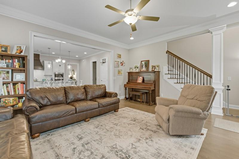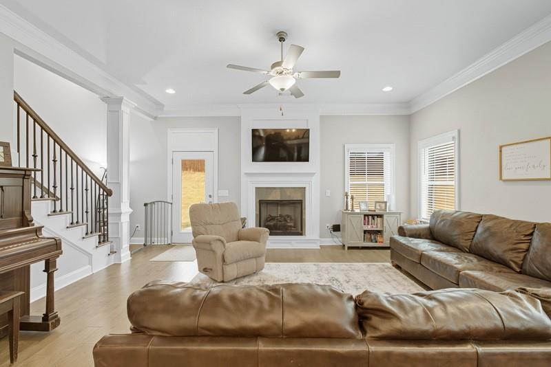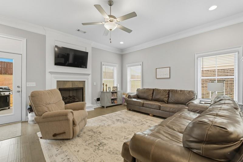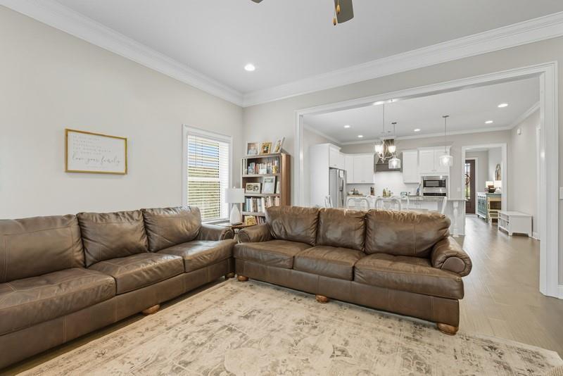 Description: Welcome to this exceptional 5-bedroom, 3.5-bath Craftsman-style home offering over 3,500 sq.ft. of living space in sought-after Donahue Ridge. Built in 2021, this residence combines timeless curb appeal with modern comfort and convenience. The 2-story brick exterior, accented by cedar details and a charming front porch, sets the tone for the warm and inviting interior. Step inside to find a thoughtfully designed floor plan enhanced by upgraded details throughout. The dining room boasts a coffered ceiling and elegant wainscoting, which continues into the foyer for a seamless touch of character. The heart of the home is the open-concept kitchen and living area, where a large island, white cabinetry, subway tile backsplash, and stainless steel appliances create a fresh and functional space. The kitchen flows into the breakfast area and living room, centered around a cozy fireplace—perfect for everyday living and entertaining alike. The spacious main-level primary suite is a private retreat, featuring an en suite bath with dual vanities, a soaking tub, and a large tiled shower. Upstairs, the thoughtful layout shines for larger households: four additional bedrooms, each with a walk-in closet, are complemented by a Jack-and-Jill bath plus a full hall bath. Ample storage is provided with two linen closets and walk-in storage options. Outdoors, the backyard offers room to relax, play, or personalize, and is partially fenced for added convenience. The location is equally impressive—just minutes to Woodland Pines Elementary and the site of Auburn’s newest high school (opening 2028), as well as North Auburn’s newest shopping center featuring Amsterdam Café, Milo’s, urgent care, and more. With quick access to Auburn’s amenities while tucked into a welcoming neighborhood, this home offers the perfect blend of community and convenience.