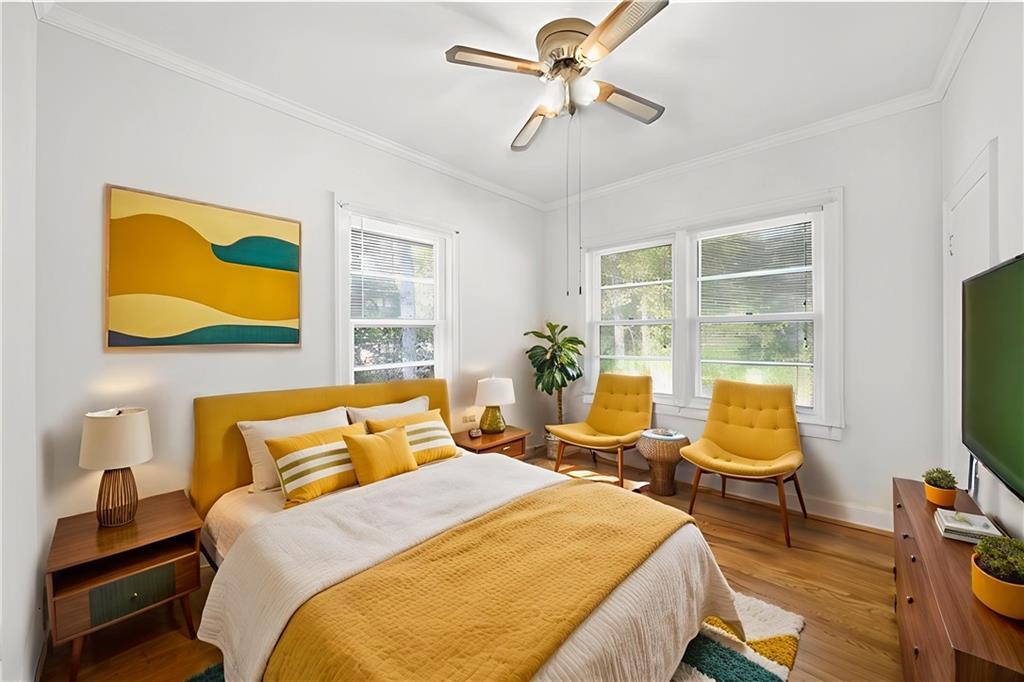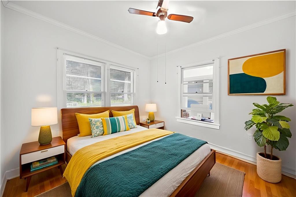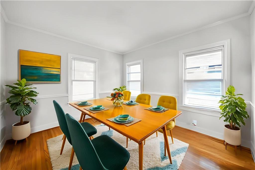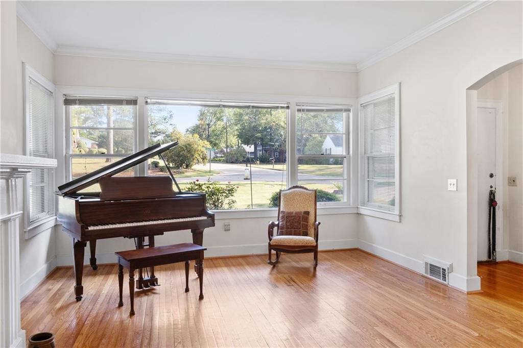 Description: Welcome to this 3-bedroom, 2-bathroom home in the desirable Northside Opelika! Conveniently located near schools, Floral Park, and Historic Downtown Opelika. A brick pathway leads you to the welcoming front door and into an inviting foyer complete with a coat closet. The formal dining room features crown and chair molding along with a vintage stained-glass light fixture, creating the perfect space for entertaining. The living room showcases beautiful windows, a wood-burning fireplace with a marble and brass surround, built-in shelving, and elegant crown molding. Just beyond, the sunroom offers an abundance of natural light — an ideal spot for morning coffee or a good book. The primary bedroom has private deck access and an ensuite bath featuring a theatrically inspired makeup station. Two additional bedrooms share a charming black-and-white tiled guest bath. Basement Garage with back entrance with double doors and secured side door entrance. Back Patio. Additional highlights include gorgeous wood floors throughout, oversized baseboards, a dedicated laundry room, ceiling fans, outside motion detectors, gutters, cage on the chimney, extra space in the crawl space, attic storage.
