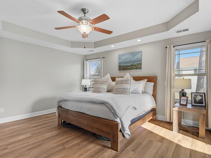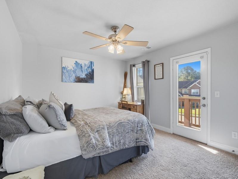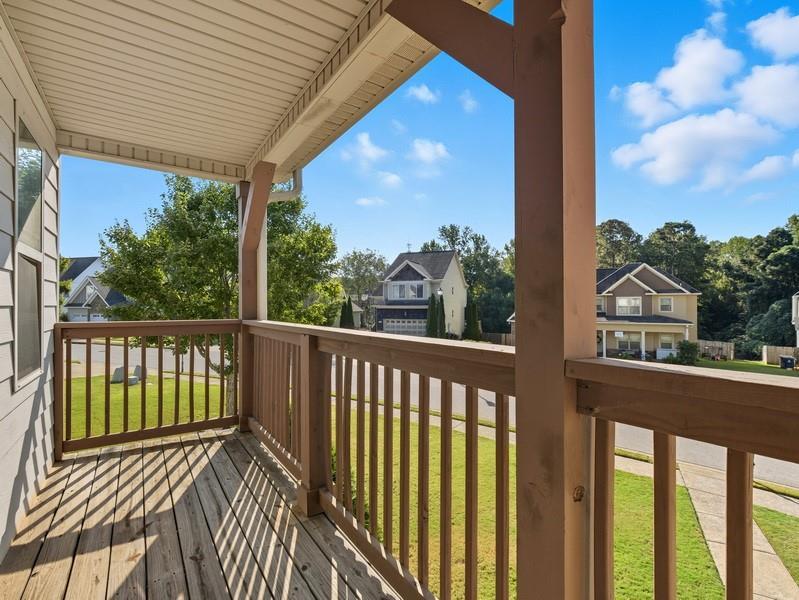 Description: This beautifully updated 3-bedroom, 2.5-bathroom home sits on a desirable corner lot in the sought-after Solamere subdivision! The welcoming front porch and charming upper-level balcony set the tone for this inviting property. Step inside to find fresh paint and brand-new flooring throughout the main level, creating a bright and airy atmosphere. The light-filled living room features soaring ceilings, wood burning fireplace, and is open to the large dining room. The kitchen offers ample counter space and cabinetry, plus a pantry. The breakfast room provides access to a patio and the backyard. Convenient for guests, you'll find a half bath on the main level. The spacious primary suite is a true retreat, featuring a private deck and an updated ensuite bathroom with an oversized shower. Two additional bedrooms share a large bathroom with private water closet. Outside, enjoy the corner lot’s extra space and curb appeal, perfect for outdoor gatherings or quiet evenings on the porch. With its blend of modern updates and inviting outdoor spaces, this home is move-in ready and a true gem!