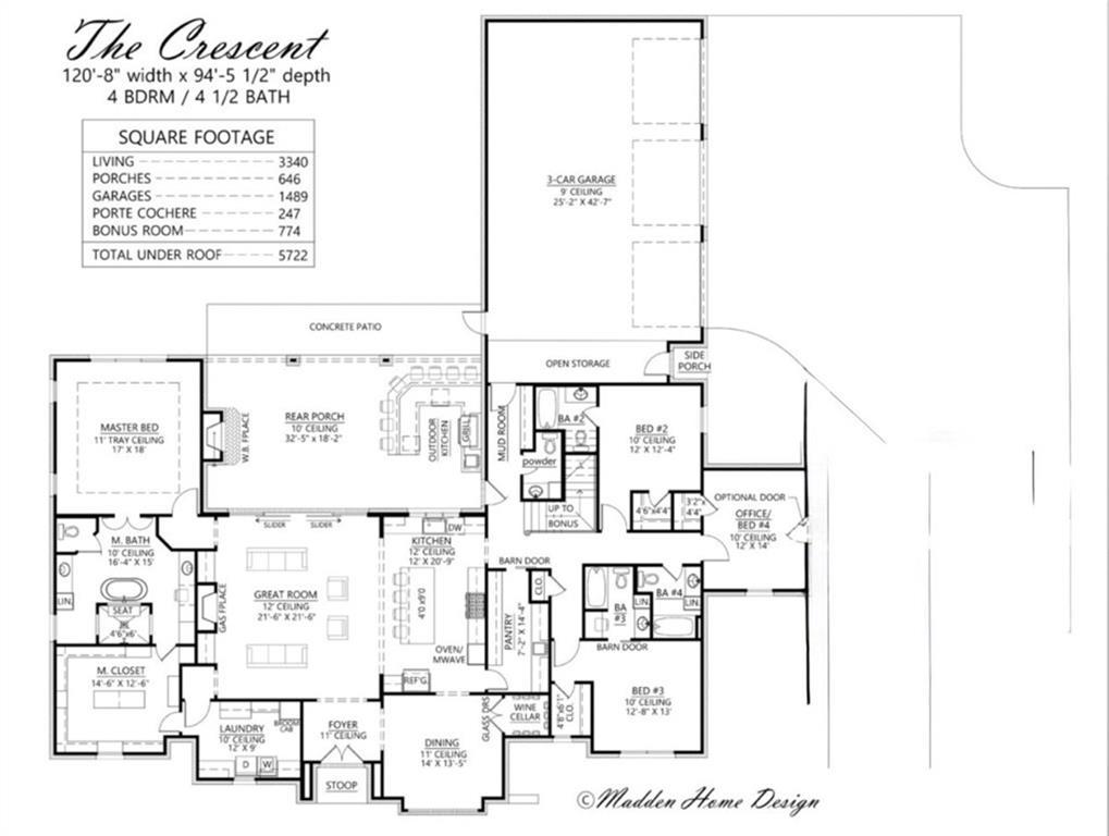 Description: Introducing The Crescent by Madden — a graceful blend of French Country and Modern style. This 4-bedroom, 5.5 bath residence spans ~3,340 sq ft of living space, plus a spacious 3-car garage and bonus room with 774 sf. You’ll love the generous porch areas, open flow, and the opportunity to personalize finishes. Perfect for entertaining or enjoying quiet family nights, this plan delivers elegance and comfort with its expansive layout. Renderings are for illustration: final plans subject to selection and modification.