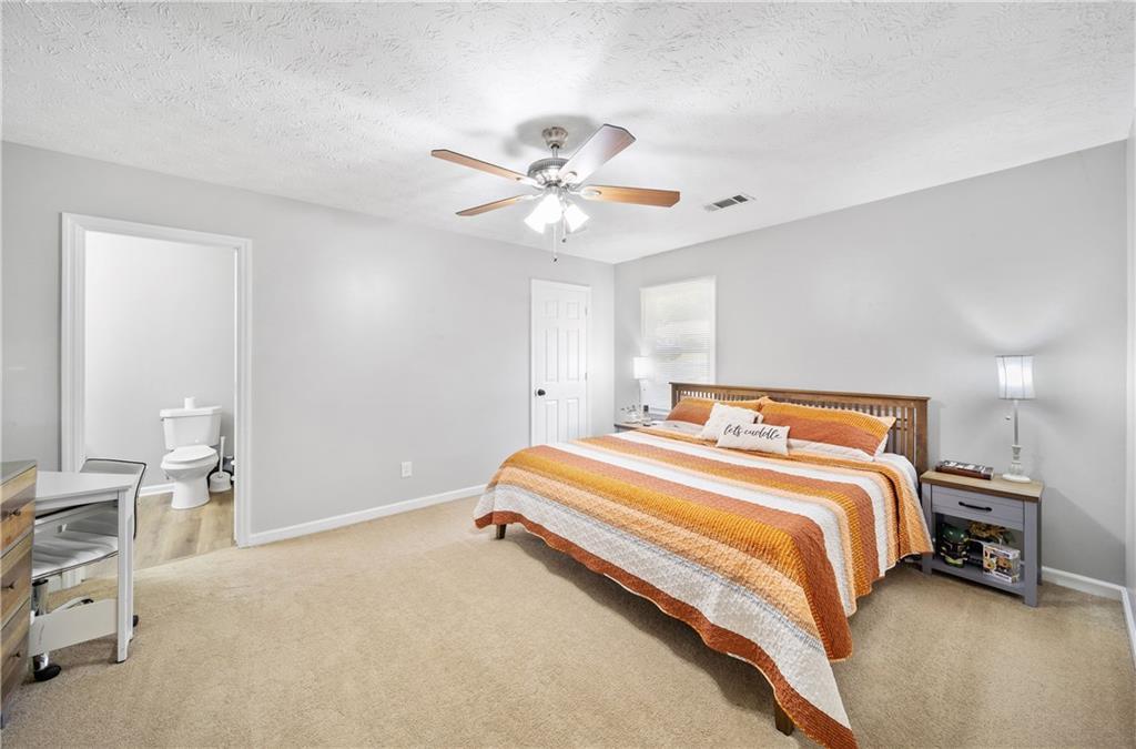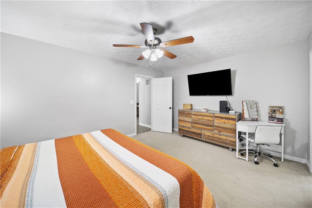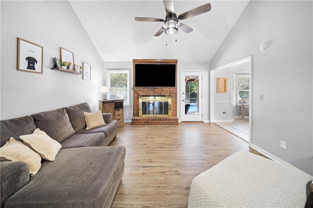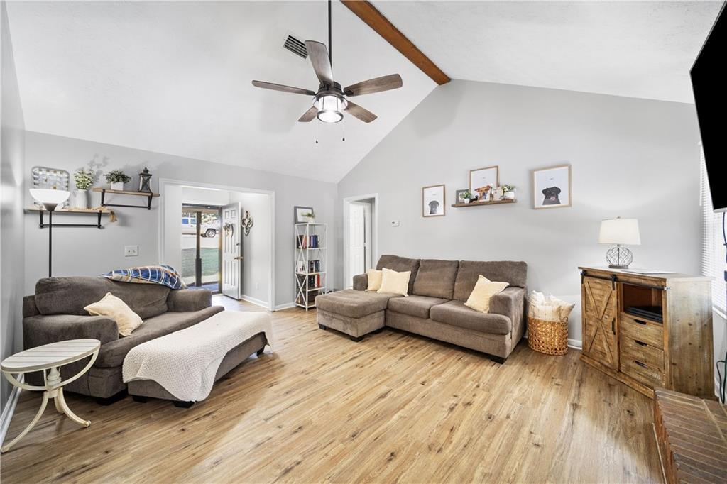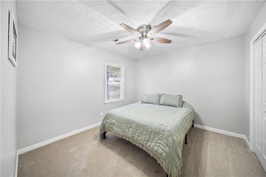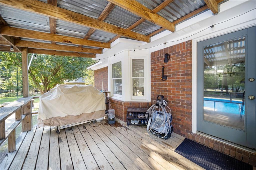 Description: Enjoy your morning coffee on the covered front porch, then step inside to discover a spacious layout featuring a split-bedroom floor plan for added privacy. The updated kitchen, completed in 2022, includes stainless steel appliances, modern cabinetry, and ceramic tile flooring, perfect for everyday cooking and entertaining.The living room is warm and inviting, showcasing new LVP flooring and a charming wood-burning fireplace. A bay window overlooks the sparkling inground pool, adding natural light and a relaxing view. The large laundry room provides extra space and convenience. The primary suite offers a walk-in closet, a freshly painted en-suite bath with new flooring, and a tiled tub surround. Secondary bedrooms are located on the opposite side of the home, ideal for families or guests. All bedrooms have ceiling fans. Step outside to your private backyard retreat, featuring a refreshing inground pool + the half acre lot has more room to play, entertain, or relax, and a storage shed that stays with the property. Additional updates include a new roof and HVAC system (2019), offering peace of mind for years to come. hot water heater and pool linear installed in 2022.