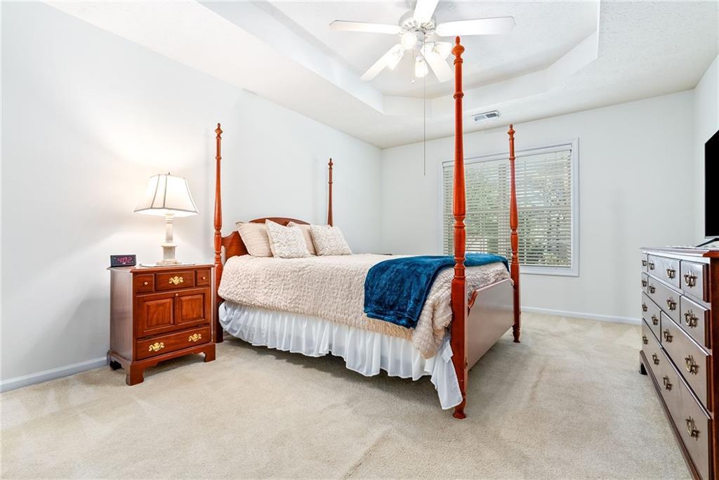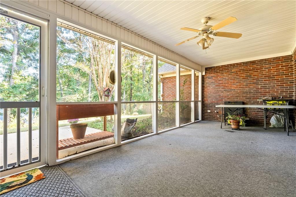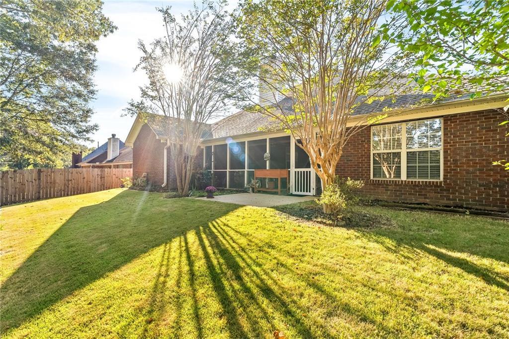 Description: This charming one-story brick residence offers timeless elegance and modern comfort, nestled in a serene setting in one of Auburn's most desirable neighborhoods - Moores Mill. Open and functional layout with stunning red oak hardwood floors throughout the main living areas. Grand formal dining room featuring a soaring 14-foot tray ceiling, crown molding, and a picturesque window that floods the space with natural light. Spacious and inviting great room with vaulted ceiling, cozy gas fireplace, and seamless flow into the breakfast nook and kitchen. Chef’s kitchen boasts brand-new quartz countertops, stainless steel appliances, abundant cabinetry, and durable tile flooring. Split floor plan. Spacious primary suite with tray ceiling and tranquil backyard views. Luxurious en suite bath with double vanity, jetted soaking tub, separate shower, and walk-in closet. Second bedroom with its own private full bath—ideal for guests or multigenerational living. Bedrooms 3 and 4 share a third full bathroom. Dedicated laundry room with built-in cabinets and utility sink. Screened-in back porch—your personal retreat. Low-maintenance yard with mature landscaping. Generously sized closets throughout. Freshly painted interior - move-in-ready. Two-car garage with workbench and shelving for hobbies and storage. Gutters and new Trane HVAC system installed in 2023. Enjoy access to the neighborhood pool and the welcoming atmosphere of Moores Mill—where convenience meets charm. Just minutes from Auburn University, Tiger Town shopping, great restaurants, schools and churches. Don’t miss this rare gem and the opportunity to live your best life in the heart of Auburn.