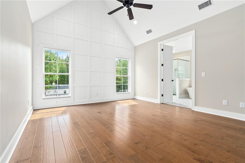 Interior | Ceiling Fans, Primary Bedroom Downstairs, Window Treatments |
