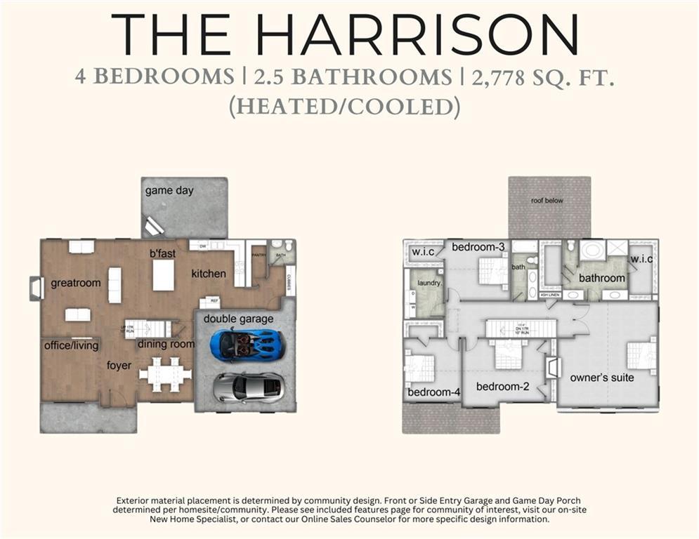 Description: Heartland Havens is a Vibrant, Newly Developed Community that offers a peaceful escape! Welcome to our Harrison C Floorplan with 2778 SF, 4 bedrooms, 2.5 baths of Thoughtfully Designed Living Space. You will feel at Home stepping into the Inviting Foyer, Formal Dining Room with Tons of Detail, Flex Space ideal for a Home Office, and Spacious Great Room with a Fireplace. Kitchen features Tons of Stylish Cabinetry, Granite Countertops & Stainless steel Appliances. The Large Kitchen Island is open to the Breakfast Area, the Walk-in Pantry for extra storage. Owner’s Entry Boasts our Signature Drop Zone, the Ideal Catch-All. Half Bath on Main Level for Guests. Upstairs Leads to Huge Owner’s Suite w/ Fireplace, your own Private Sanctuary. Owner’s Bath w/ Garden Tub, Separate Shower & Dual Walk-in Closets. Additional Bedrooms are Spacious with/ Tons of Closet Space. Upstairs Laundry & Hall Bath are centrally located to the Bedrooms. Enjoy Durable & Stylish Luxury Vinyl Plank Flooring throughout Living Spaces on the Main Level. Our Signature Gameday Patio with Wood-Burning Fireplace is the Perfect Space for Fall Football. Tons of Hughston Homes Included Features, Opportunity Awaits! Elevate your lifestyle with Home Automation, Keyless Entry, Video Doorbell, Automated Front Porch Light, and more!