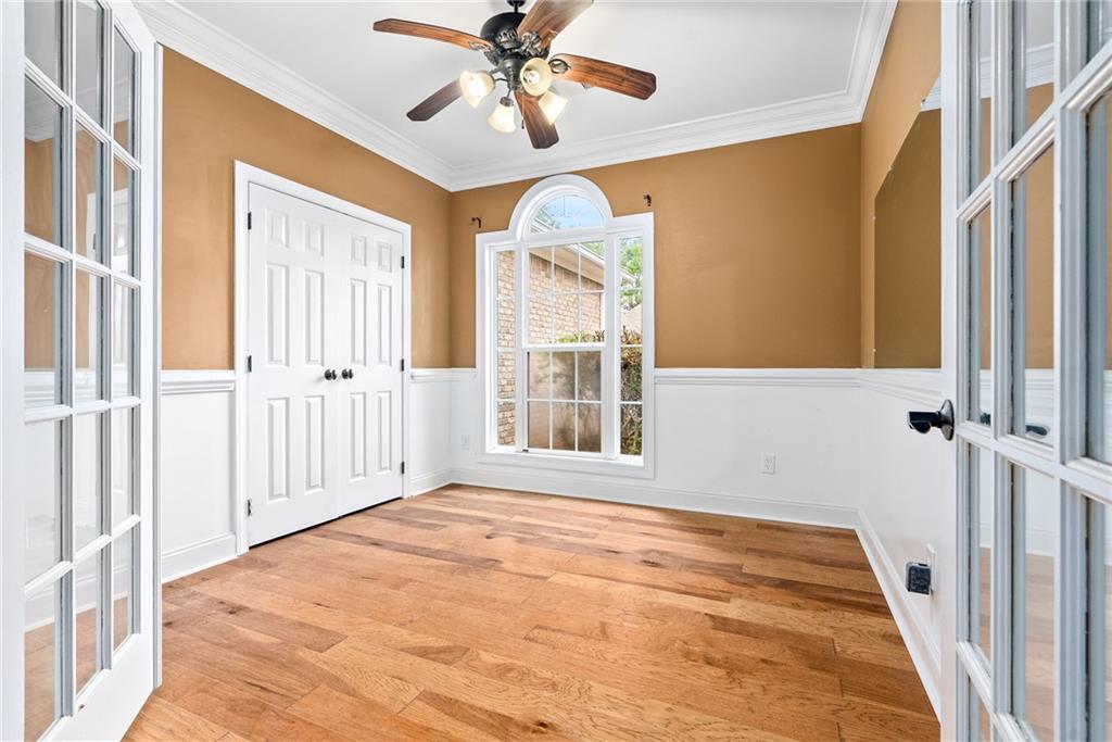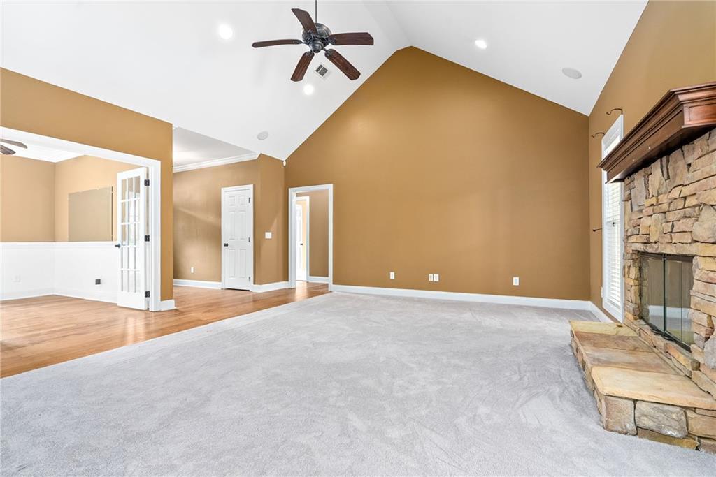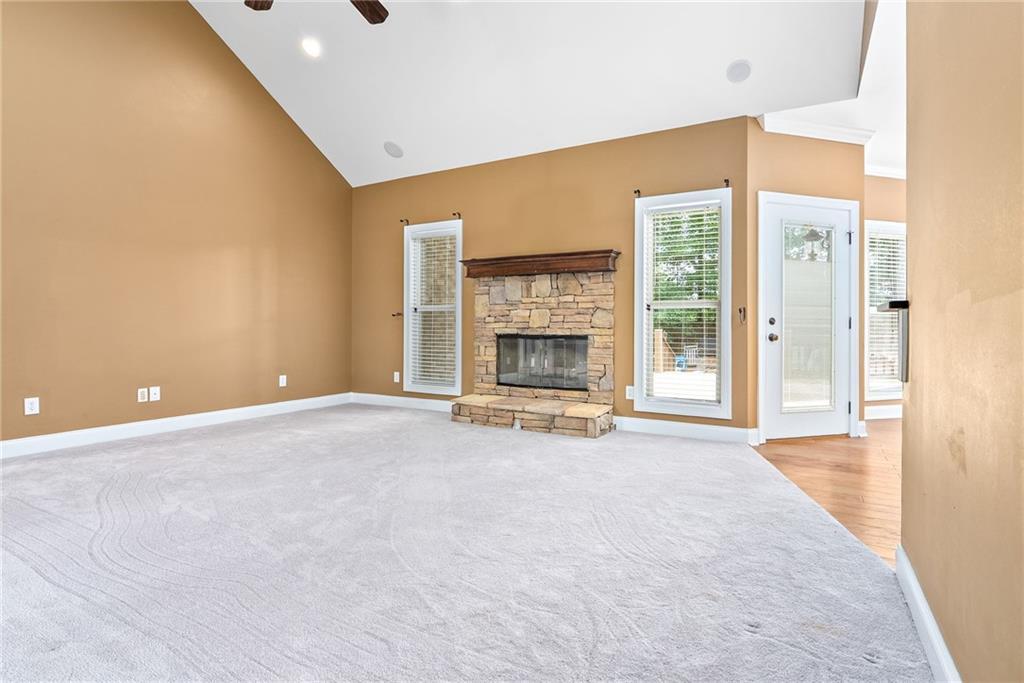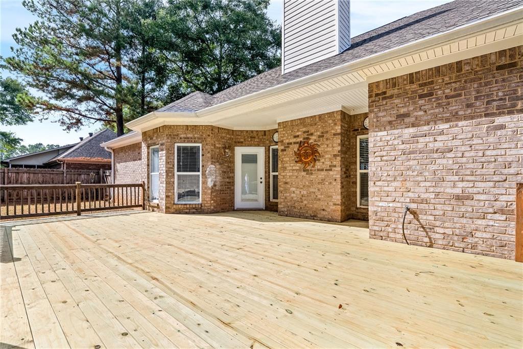 Description: Great location near neighborhood amenities. Entrance opens to Great Room. Kitchen just off Great Room includes breakfast room. Separate dining room. Split floorplan. Master suite and utilities near 2-car garage. All other bedrooms and one bath just off Great Room on the other side. Fenced back yard with outdoor storage building. Window treatments, refrigerator, washer/dryer to remain. New carpet and wood flooring throughout home. New roof in 2023 by Superior Roofing. New air conditioner in 2024. New water heater 2025. New rear deck in October 2025.