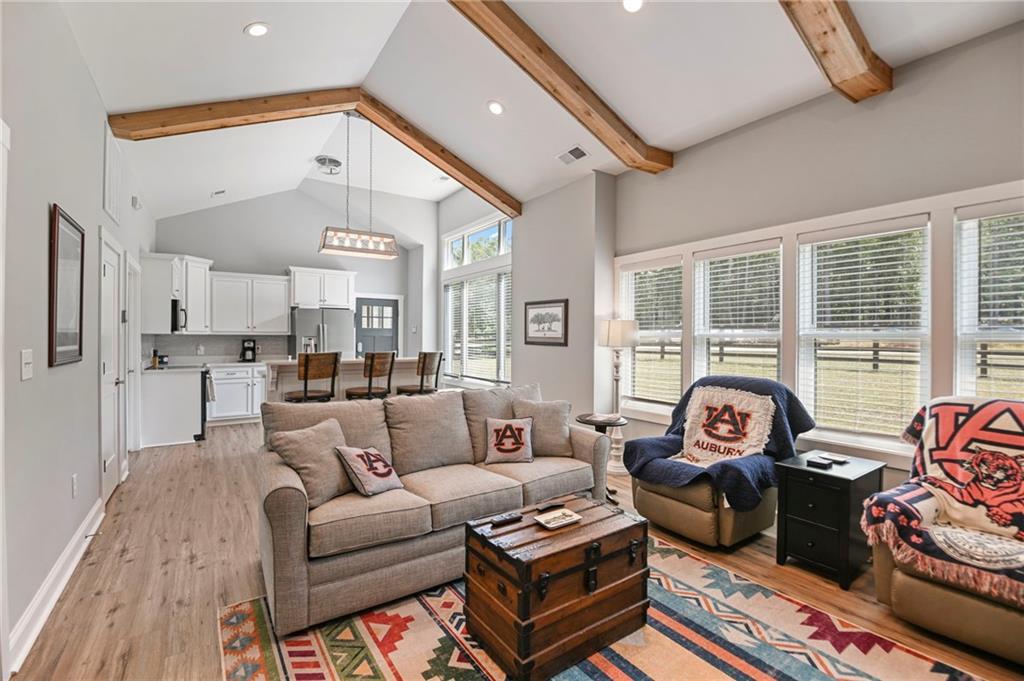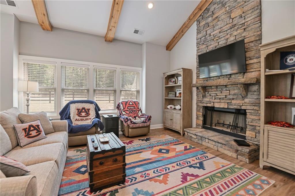 Description: Just minutes from downtown Auburn, this property offers the perfect balance of convenience, comfort, and charm. Located on the quiet and scenic Bud Black Road, it’s about as close as you can get to campus without being inside the city limits. Built in 2020, this well-appointed one-bedroom, one-and-a-half-bath home sits on nearly two acres, providing plenty of space and flexibility. The residence is tucked into the corner of the lot, leaving ample open area that could accommodate another home. The property is fully fenced, with a section of hog-wire fencing designed to keep small pets in and unwanted critters out. As a special Auburn touch, the front yard features an oak tree grown from one of the original Toomer’s Oaks — a piece of Tiger tradition right at home. Inside, the home features quality finishes and thoughtful details, including Whirlpool appliances (refrigerator, microwave, washer, dryer, and electric range), a tankless hot water heater, and stylish flooring throughout. The open-concept kitchen and living room boast vaulted ceilings with exposed beams and a stone fireplace, creating a cozy yet spacious feel. Outdoor living is the true highlight of this property. The attached screened porch and pavilion were designed with gatherings in mind, centered around a striking wood-burning fireplace — perfect for watching the Tigers play on a crisp fall evening. Additional features include a level 30x30 pad with water and 50-amp power already in place, making it ideal for an RV, motorhome, or a future garage. Best of all, there’s no HOA and no known restrictions, giving you the freedom to enjoy and improve the property as you wish. Whether you’re looking for a low-maintenance residence, a secondary home, or the ultimate gameday retreat, 1510 Lee Road 80 offers it all in a prime Auburn location.