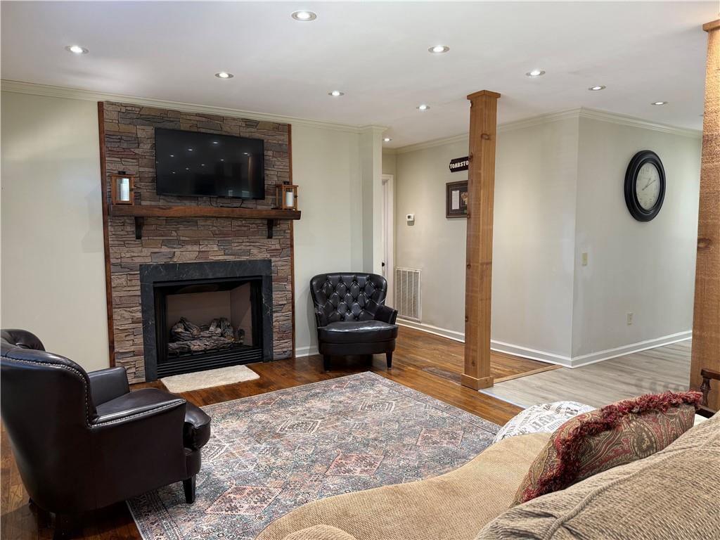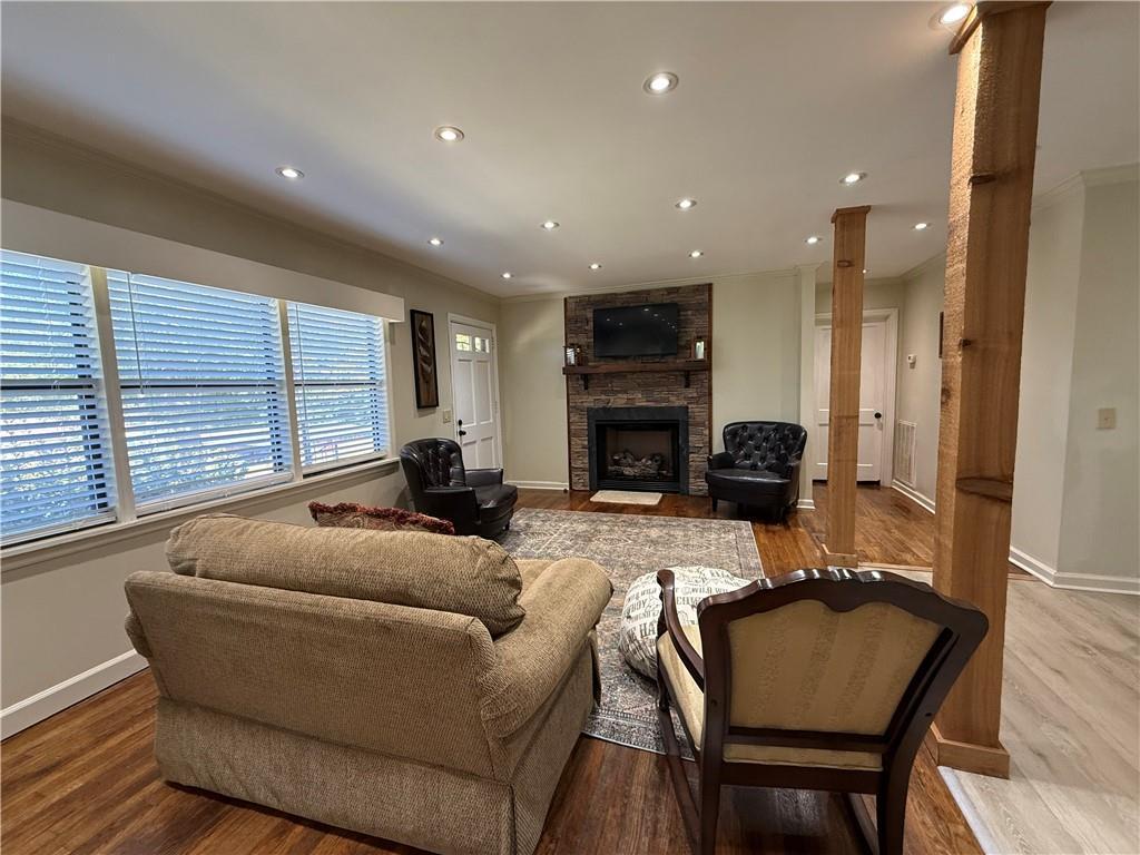 Description: Charming and fully updated 2-bedroom home on a spacious double lot with a dedicated garden area. Recent updates include two fully renovated bathrooms, new ductwork, updated plumbing, and a tankless water heater. Inside, you’ll find a welcoming layout with hardwood and LVP flooring, recessed lighting, and a cozy gas fireplace. The kitchen is designed for both style and function, showcasing granite countertops, a gas island stove, stainless steel appliances, and plenty of workspace. Additional highlights include a single-car garage, two storage shops, a concrete driveway, and 2-inch blinds throughout. The fenced yard adds privacy and space for gardening. Supper covenant to I-85, restaurants and shopping