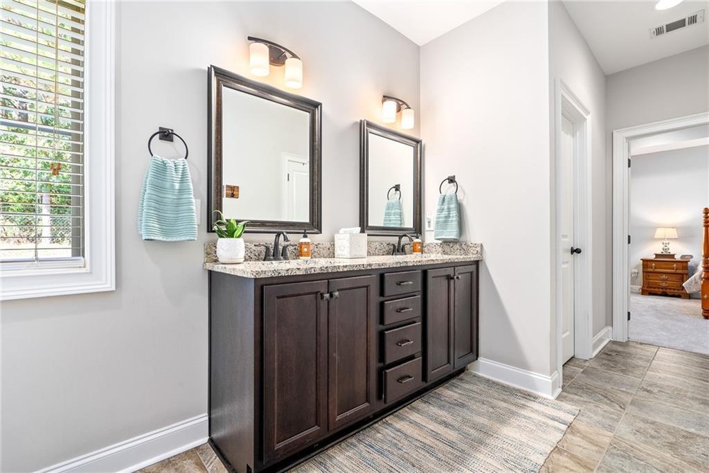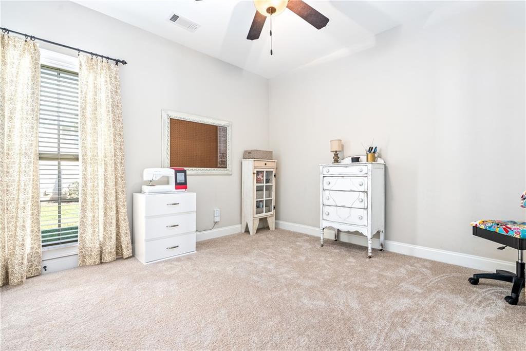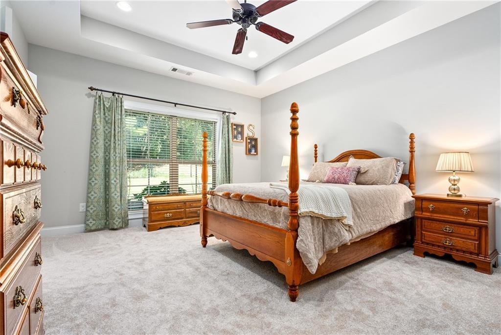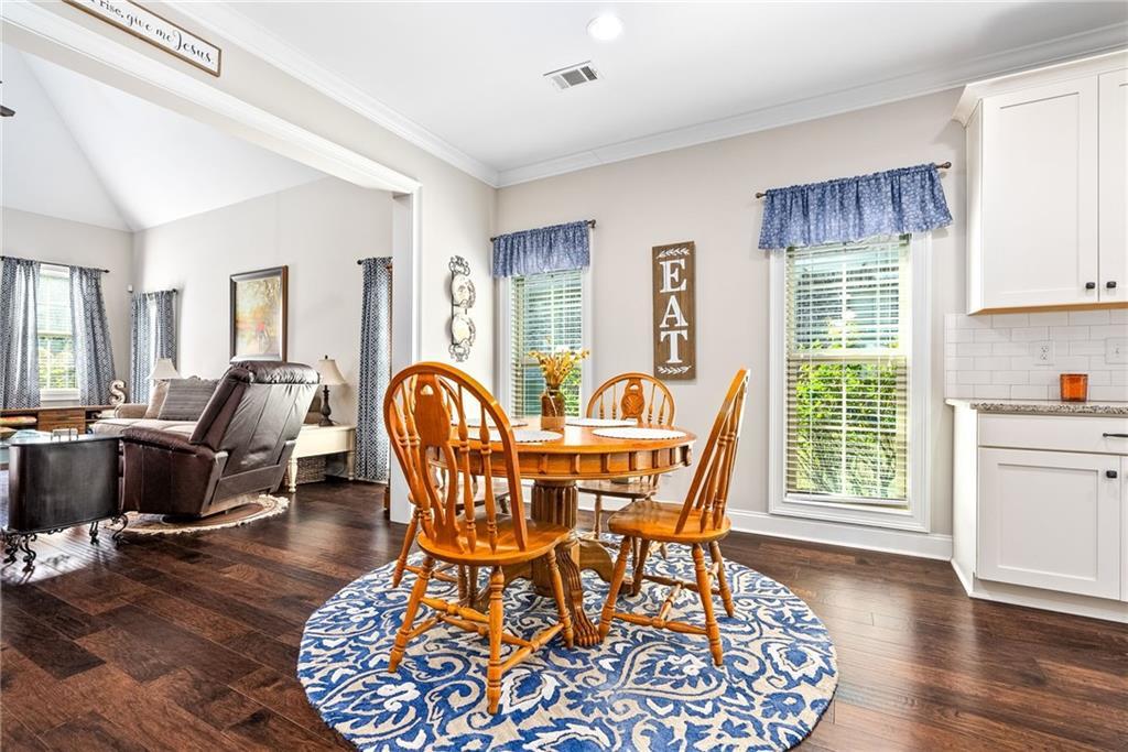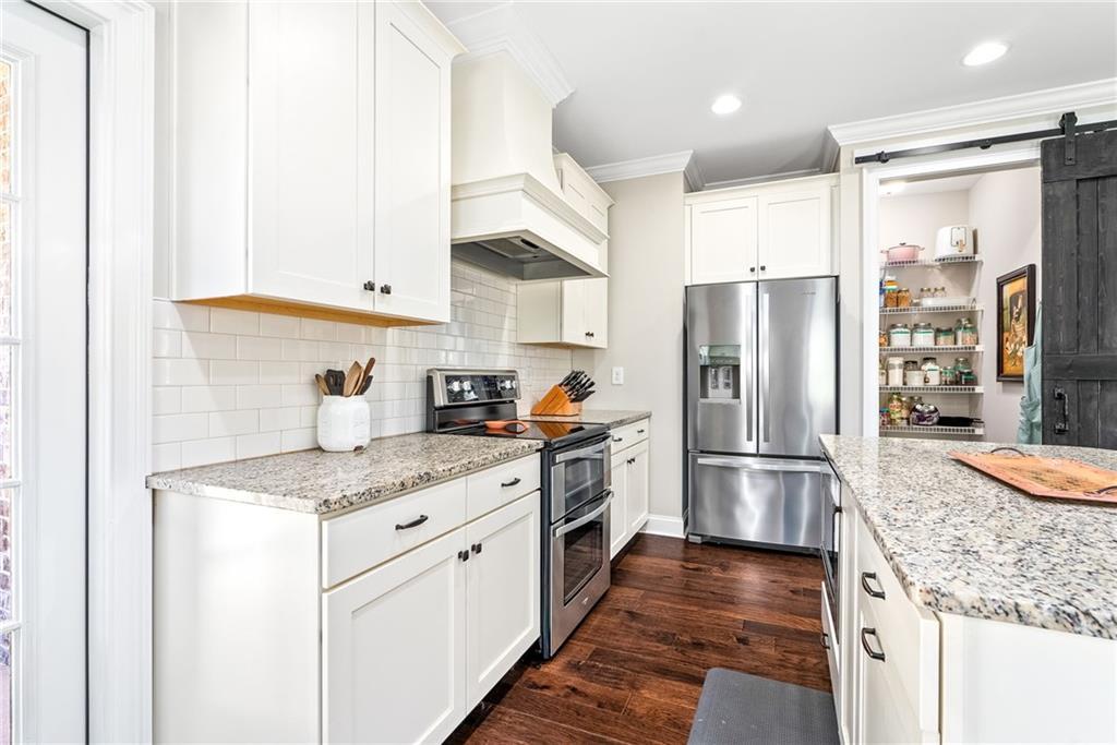 Description: This stunning Druray Plan by Holland Homes combines timeless cottage-style architecture with modern comfort and thoughtful upgrades throughout. Featuring an open floor plan and 4 spacious bedrooms, this home is designed for both style and functionality. Step inside to a bright, inviting living space with hardwood floors, a gas log fireplace, and a vaulted ceiling that flows seamlessly into the dining area. The kitchen is a true highlight, offering a large center island, granite countertops, tile backsplash, stainless steel appliances, a double oven range (March 2025), built-in microwave, and a walk-in pantry with a sliding barn door. The refrigerator stays with the home. The primary suite on the main level boasts a spacious walk-in closet and a luxurious ensuite with a soaking tub, separate shower, and dual vanities. Upstairs, additional bedrooms provide great closet space and a guest bath with updated tile (December 2023). Enjoy relaxing mornings or cozy evenings on the covered rear porch, with a fenced backyard offering extra outdoor living space. The attached two-car garage, attic storage, and dedicated laundry room provide everyday convenience. Located in the sought-after The Meadows at Highlands! This neighborhood offers a low-maintenance lifestyle with HOA services that include: Lawn mowing & edging, Flower bed maintenance, pine straw, fertilizer & weed control. This home has been beautifully maintained and upgraded, including: Roof replaced April 2022, New carpet in bedrooms October 2025, Interior paint touch-ups for a fresh feel, Extended patio (2025) — perfect for entertaining, Fenced yard for privacy and pets, Irrigation system to keep the lawn lush, Alarm system for added peace of mind.