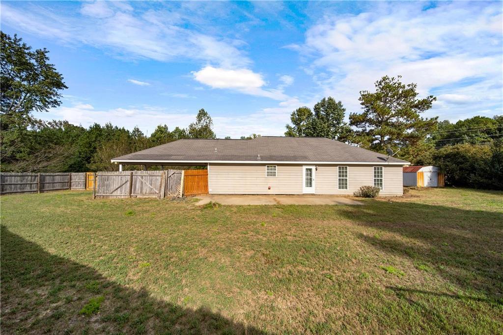 Description: This property combines peaceful country living with practical features in the desirable area of Haley Woods Subdivision. This charming 3br, 2 bath home is situated on a large fenced lot. There is 1,353 sq ft of well designed living space. This home offers a split floor plan for added privacy and comfort. The spacious living room features beautiful hardwood floors and a vaulted ceiling, creating a bright and open feel. The kitchen is equipped with black appliances and offers prep space plus a dining area, making it perfect for everyday cooking or entertaining. The large laundry room adds storage + convenience, and the double carport provides sheltered parking. Relax in the generously sized primary suite enjoying natural light, a large walk-in closet, double vanity, a separate shower, and a soaking tub. Outside, enjoy the level yard, ideal for pets or play.