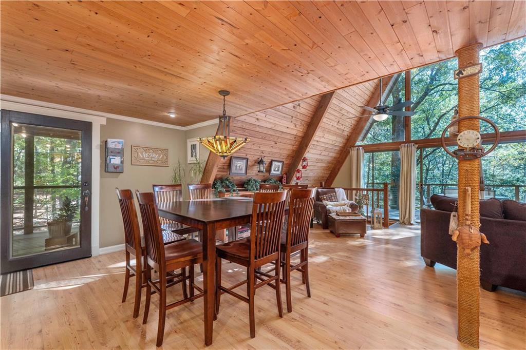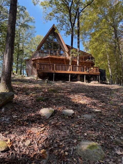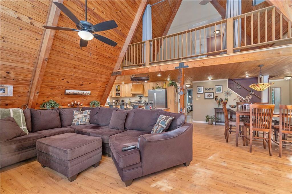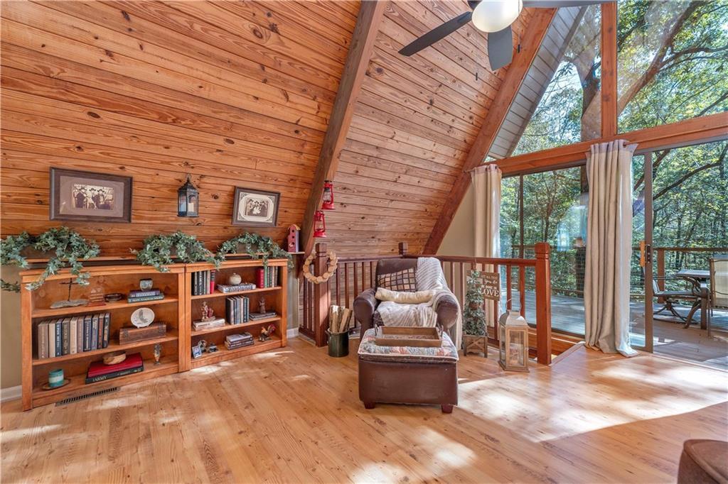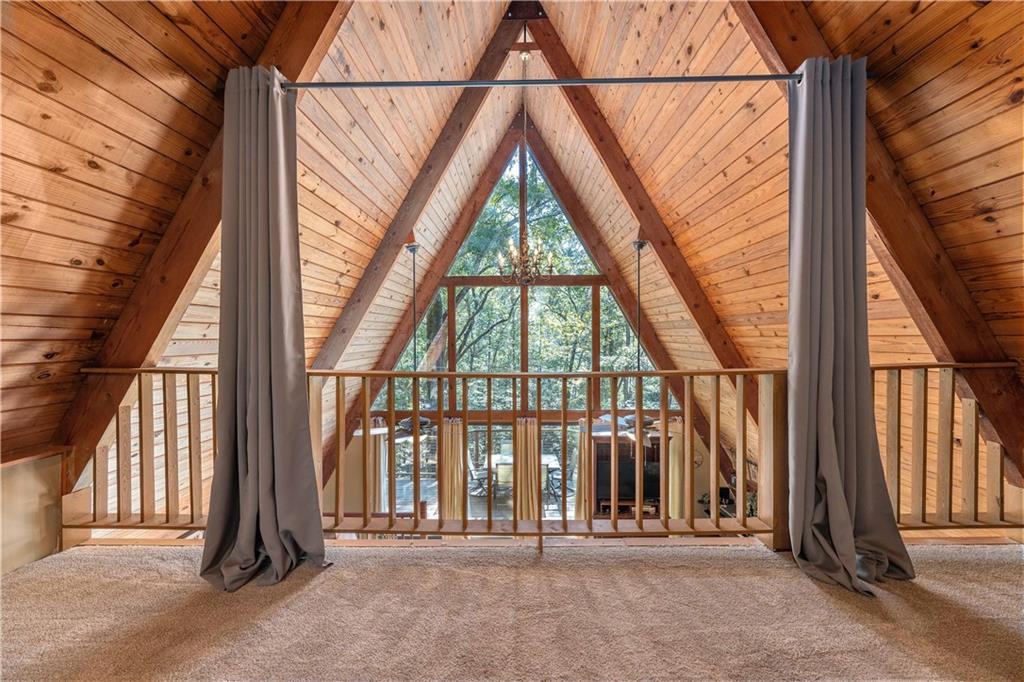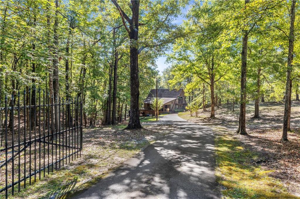 Description: Nestled on a quiet country road in Salem Alabama, you’ll find this spectacular 3 level / 4 Bedroom / 2 Bath A Frame home. As you pull into the driveway you are greeted by elegant stacked stone columns accented by natural wood ranch style fencing and a private solar gate. As you descend along the long driveway you begin to feel yourself leaving the hustle and bustle of urban life and begin to relax and absorb the intoxicating beauty of this magical 6.5 acre wooded double lot. Over 3 acres are fenced with a goat barn and chicken coop to house livestock. There’s also an additional storage shed and lovely garden areas with local indigenous flowers and foliage. Step inside the main living room where you are greeted by breathtaking 25 foot arched ceilings in the main living room, Douglas Fir beams, knotty pine tongue and groove ceilings bathed in natural light. Step through the doors on to the breathtaking deck with wood and steel wire railing overlooking the natural beauty that surrounds this home in all directions. The Island Kitchen is well appointed with stainless steel appliances, upgraded LED lighting, ample custom wood cabinetry + counter space and charming accents galore! Master Bedroom on the top floor is an oasis from the world with en-suite newly remodeled Master Bath with his and hers vanity and seamless glass shower. There's a lovely loft just steps away overlooking the main home below or step out on to the front deck to enjoy a sunset view or enjoy a cup of coffee as you prepare for your day. On the main level you’ll find 2 additional well appointed spacious bedrooms and a tastefully remodeled full bath with adjacent laundry room. All appliances transfer with this very special home. Downstairs you’ll find a large living area with a home office, personal home gym which could easily serve as a 4th bedroom/wing perfect for a very private teenage, in-law of guest living area.