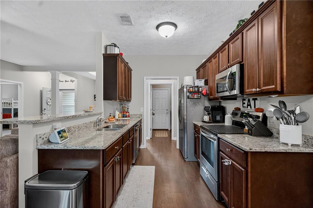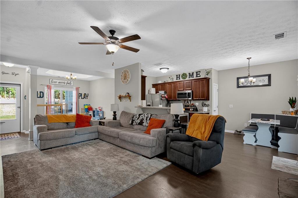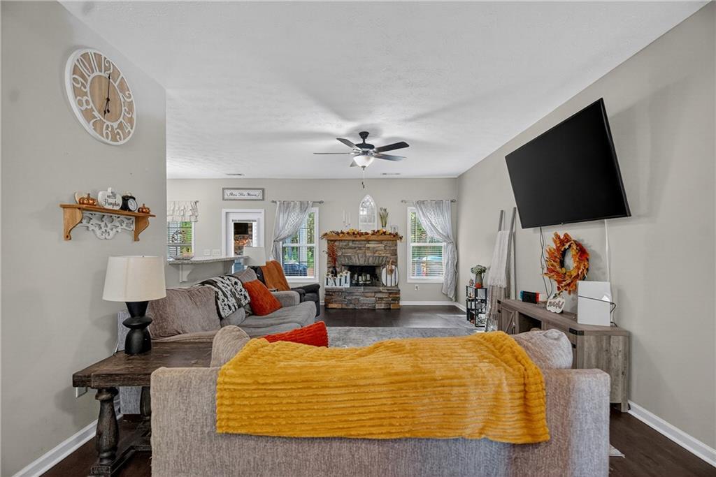 Description: Welcome to this beautiful home in Long Bridge Estates subdivision. This charming 3-bedroom, 2 bath home offers modern comfort and timeless style on a spacious, fenced-in, private 0.76 acre lot. Step inside to find an open, split bedroom floor plan filled with natural light and thoughtful design details throughout. The living room features a cozy stacked-stone fireplace and flows seamlessly into the kitchen and dining room making it perfect for family gatherings or entertaining guests. The kitchen boasts granite countertops, stainless steel appliances, and ample cabinet space. The primary suite is a true retreat with dual vanities, a relaxing garden tub, a separate shower, and two walk-in closets. Luxury vinyl plank flooring extends through the main living areas, while carpet creates comfort in the bedrooms. Enjoy peaceful mornings or relaxing evenings on the covered back porch, with a wood burning fireplace overlooking your large, level, fenced-in backyard. The home includes a two car garage, covered front entry, and energy efficient features throughout. Nestled in a quiet neighborhood this home offers the perfect blend of privacy and convenience. Just minutes from shopping, schools, and local recreation spots.