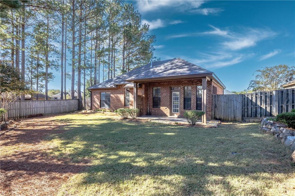 Description: This beautifully maintained, four-sided brick home in highly desirable Tuscany Hills won’t last long! Perfectly located just off Highway 280, and access to I-85 in under 10 minutes. This home is a few minutes close to Kreher Preserve and nature center—enjoy hiking trails and outdoor recreation. Auburn University is only a convenient 7-minute drive away. This home is truly main-level living at its best—no stairs, no stress on your knees! Freshly painted throughout, the interior is move-in ready and full of natural light thanks to oversized windows throughout the home. A welcoming foyer opens to a cozy dining room, perfect for family meals or entertaining. The kitchen features stylish black tile countertops and backsplash, beautifully detailed cabinetry, and a great open layout connecting to both the breakfast nook and the spacious great room. The breakfast nook is surrounded by extra windows for warm morning sunlight. Relax in the great room with a charming fireplace, ideal for gatherings or peaceful evenings at home. Step outside to the covered back porch overlooking a beautifully landscaped backyard, lovingly maintained and perfect for BBQ, tea time. The bright master suite features oversized windows, while the master bathroom offers a garden tub and a private enclosed shower. Two additional bedrooms are located on the opposite side of the home, providing a comfortable split floor plan for family or guests. The laundry room includes ample cabinetry and a built-in folding or ironing console for convenience. This three-bedroom home is also an excellent investment opportunity in a prime Auburn location. Schedule your tour today with your favorite realtor—this one won’t stay on the market long!