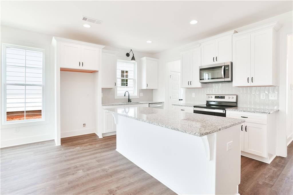 Description: Close as soon as December 31st! The Tate C is a three bedroom, two bathroom, 1448 square foot home. As you enter into the home, you make your way into the open concept kitchen and dining area. The kitchen features a large center island, perfect for entertaining. Tucked behind the kitchen is the pantry and laundry room. The dining room flows into the living area that features floor to ceiling windows. Off the back of the home rests the primary suite that features a spacious bedroom, en suite bathroom with a single vanity sink and a walk-in closet. The second and third bedrooms are tucked off the kitchen and share a hall bathroom.
