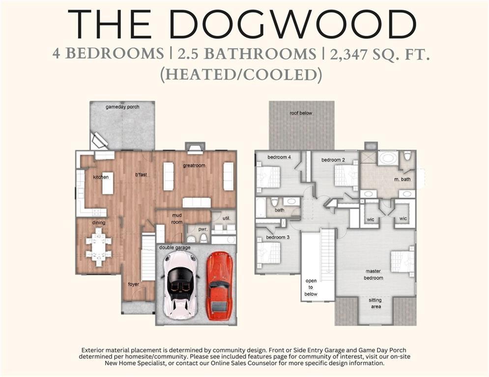 Description: Discover The Haven at Plainsman Lake, a Hughston Homes community in Auburn, AL, where scenic nature trails and peaceful lake views create an inviting escape. Welcome to the Dogwood A Floorplan, a beautifully designed Traditional Craftsman offering 2,379 sq. ft. of elegant living space with 4 bedrooms and 2.5 baths. Step into the impressive two-story foyer that leads to a formal dining room featuring coffered ceilings and detailed trim work. The spacious great room includes a cozy gas fireplace, perfect for relaxing or entertaining. The open-concept gourmet kitchen is a showstopper, featuring stylish cabinetry, granite countertops, a tiled backsplash, and premium stainless steel appliances, including a gas cooktop, wall-mounted microwave and oven, stainless vent hood, and upgraded dishwasher. The large center island is ideal for meal prep or casual gatherings, while the generous pantry provides ample storage. The owner’s entry from the two-car garage showcases our signature Drop Zone with built-in cubbies, laundry area, and a conveniently located half bath. Upstairs, the luxurious owner’s suite offers a private sitting area, dual walk-in closets, and a spa-like bath with a garden tub, tiled shower, and double vanity. Additional bedrooms are spacious and filled with natural light, sharing a well-appointed full hall bath. Enjoy Luxury vinyl plank flooring that extends through the main living areas, so many luxury details and finishes throughout this home. Enjoy the outdoors on our Signature Gameday Patio with a wood-burning fireplace, perfect for entertaining year-round. Smart Home technology features are included, adding comfort, convenience, and modern style to your everyday living. Experience elevated living at The Haven at Plainsman Lake!