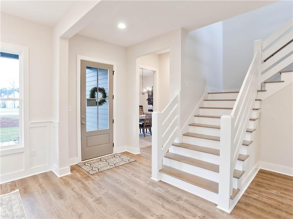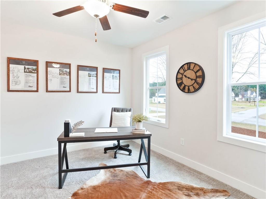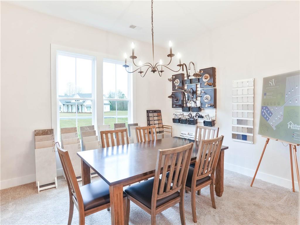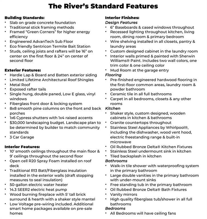 Description: Buildable plan & lot! The River is a 5 bed, 3.5 bath, 2,814 sq ft home. The covered front entry porch wraps around the exterior of the home & opens to the dining room. The dining room & entry foyer flows into the living room & kitchen which includes tile backsplash, & soft close cabinets. The covered back porch & laundry room are situated at the rear of the home. Off the living room is the owner's retreat which features a spacious bedroom & bathroom with a large closet. On the main level you will also find bedroom #2, which could serve as a study, & a powder bath. As you make your way upstairs, you'll find 3 additional bedrooms with 2 full bathrooms & a loft area. Additional 2 & 3 car detached garage options are available on most lots. Price shown includes $55,659 lot premium. Lot premiums may vary per lot. Additional plans available. Please ask agent for details.