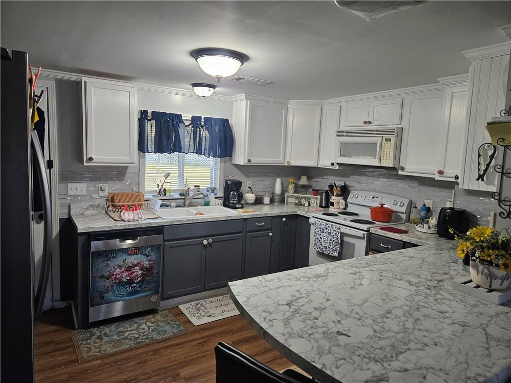 Description: Nestled on a spacious one-acre lot, this charming two-bedroom, one-and-a-half-bath home has been beautifully remodeled from the studs up just three years ago. Enjoy modern comfort with updated finishes throughout. The kitchen comes complete with a stove, refrigerator, and dishwasher, microwave, and the washer and dryer are also included—making this home truly move-in ready. Storage Building to convey with the property. Property being sold "AS IS".