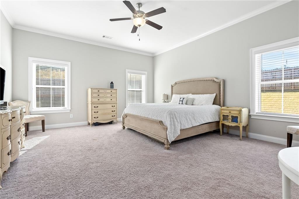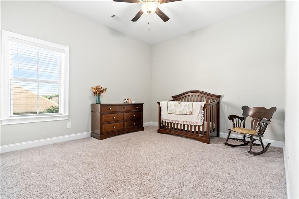 Description: Discover exceptional space and modern style in this beautiful 6-bedroom, 4.5-bath home built in 2022 and located in the highly sought-after Camden Ridge neighborhood. Designed for comfort and versatility, this home features a primary suite on the main level along with a secondary bedroom complete with its own private ensuite! A welcoming foyer leads to a formal dining room and a convenient half bath off the living room. A bright breakfast area just off the kitchen, offering multiple spaces for gathering and entertaining. The primary suite boasts a spacious walk-in closet, dual vanities, a freestanding soaking tub, and a large walk-in shower. Upstairs you'll find four additional generously sized bedrooms, each with its own walk-in closet, ensuring plenty of storage for all. The large bonus/media room upstairs has been fully finished to serve as the 6th bedroom if desired, giving you options for a guest suite, home office, or additional living space. Enjoy outdoor living on the screened-in back porch overlooking the fenced backyard—perfect for children, pets, and weekend relaxation. With its modern finishes, flexible floor plan, and desirable location in Camden Ridge, this home offers a rare blend of comfort, functionality, and style.