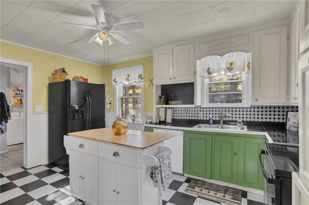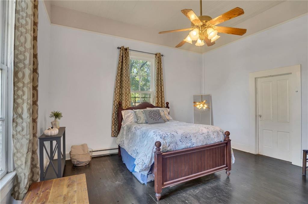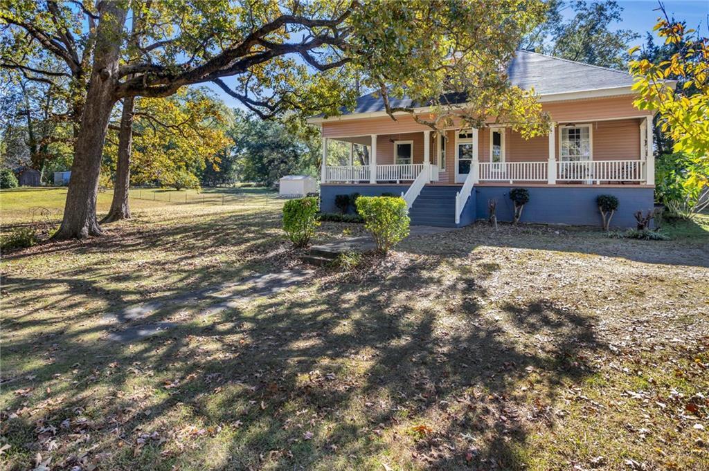 Description: Built in 1900, this historic home features 3 bedrooms and 2 bathrooms on a spacious 2-acre lot. Interior highlights include a dedicated dining room with large windows, a kitchen with black-and-white tile flooring, and generously sized bedrooms. The primary bathroom offers a classic clawfoot tub. A large covered front porch provides a welcoming space for morning coffee or gathering with friends. An above-ground pool with surrounding deck offers additional outdoor enjoyment. The roof has been replaced (2023) and the property has brand new water heater (2025).