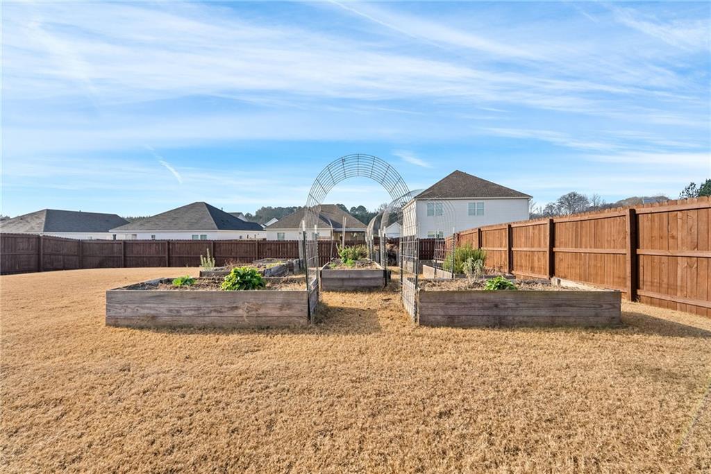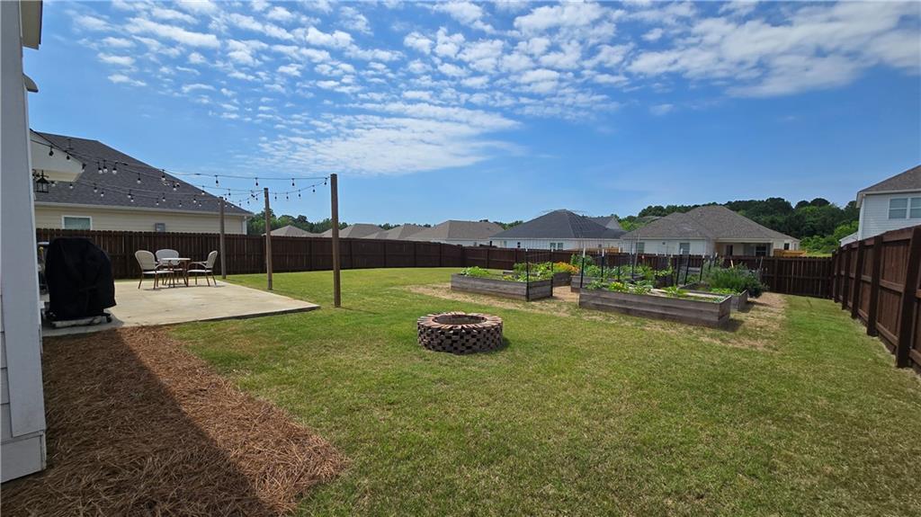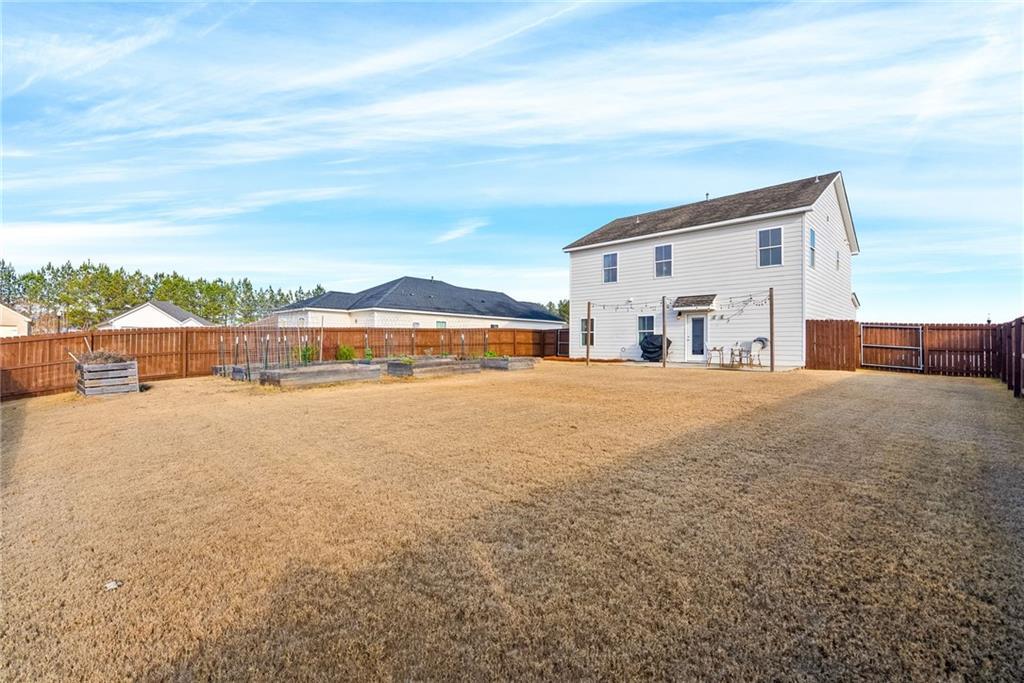 Description: Welcome to this stunning two-story home that's barely had time to break in its welcome mat! Built less than four years ago, this impeccably maintained property offers the perfect blend of modern convenience and cozy charm. Step inside to discover gorgeous LVP flooring flowing throughout the main living areas, even into the kitchen, where gleaming granite countertops pair beautifully with stainless steel appliances, making meal preparation a pleasure rather than a chore. Don't miss the nearby pantry with upgraded shelving offering dream organization! The thoughtfully designed floor plan places all four bedrooms upstairs, including a spacious primary bedroom, while a convenient half-bath on the main level keeps daily traffic flowing smoothly. Outside, the fenced-in backyard transforms into your personal oasis! The meticulously tended garden comes complete with a generous gift: the current owner will leave behind all growing essentials, including heat mats, fertilizer, and detailed care instructions! Add in the enchanting bistro lights and inviting fire pit, plus a gas hookup for your grill, and you have the perfect setting for evening gatherings under the stars. Don't forget about the 2-car garage providing ample space for vehicles and storage, while neighborhood amenities including a sparkling pool and playground offer recreation just steps from your door. Schedule a private showing today and discover how this amazing treasure could become your forever home!