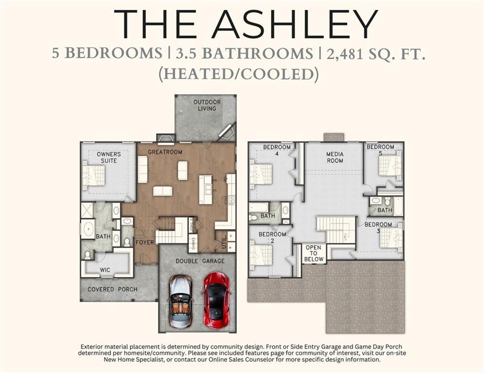 Description: Welcome to Wyndham Village, a charming Hughston Homes community nestled in Opelika, Alabama, where modern living meets small-town comfort. Our Ashley A floor plan offers 2,481 sq. ft. of well-designed space featuring 5 bedrooms and 3.5 baths. Step into the two-story foyer and feel the open flow throughout the main level. The spacious great room with a gas fireplace connects seamlessly to the stunning kitchen, featuring granite countertops, tiled backsplash, stylish cabinetry, stainless steel appliances, including a gas range and microhood, and a large island with sink and integrated dishwasher. The walk-in pantry adds convenient storage, while the breakfast area overlooks the backyard for easy morning gatherings. The main-level owner’s suite is a true retreat, boasting tray ceilings, a luxurious bath with a garden tub, tiled shower, double vanity, and a large walk-in closet with a window for natural light. The owner’s entry includes our Signature Drop Zone with built-in cubbies, and the laundry room and half bath are conveniently located nearby. Upstairs, enjoy a huge media room perfect for movie nights, plus four spacious bedrooms. Bedrooms 2 and 4 share a Jack-and-Jill bath, while bedrooms 3 and 5 have easy access to the hall bath. Luxury vinyl plank flooring runs throughout the main living areas. Step outside to our signature Gameday Patio with a wood-burning fireplace, ceiling fan, and outdoor speakers, perfect for entertaining. Enjoy included features like blinds on the front of the home, an irrigation system, smart home technology, and a two-car garage. Wyndham Village residents also enjoy access to a sparkling pool, playground, and community pavilion, making this home a perfect blend of space, comfort, and lifestyle.