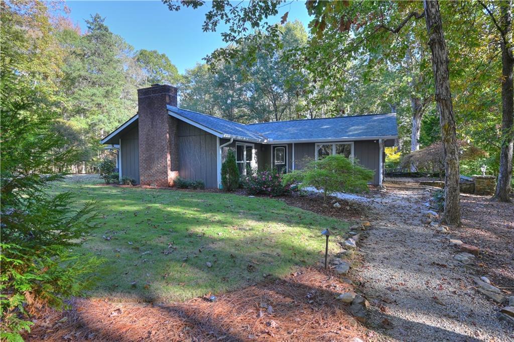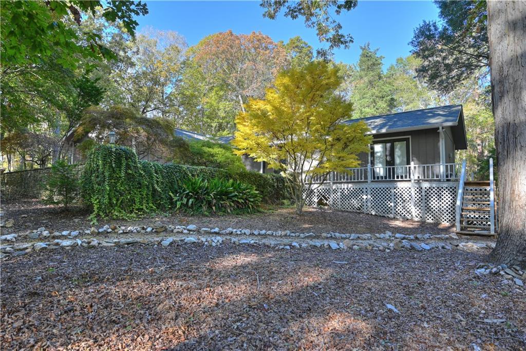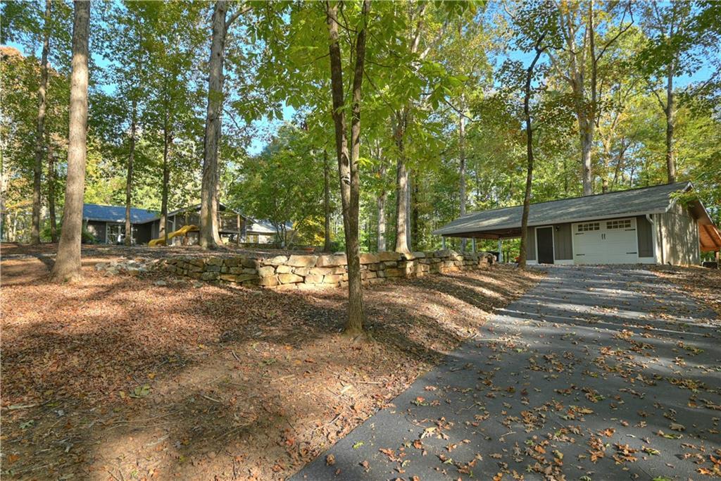 Description: Nearly 4 wooded acres! Tucked quietly among mature hardwoods, this beautifully renovated one-level home offers the rare blend of privacy, character, & convenience—just 7 miles from Auburn University & minutes to Moores Mill dining & shopping. A long paved drive flanked by stone columns leads to a charming home surrounded by natural landscaping & Japanese maples. Inside, recent renovations enhance timeless details like exposed beams & large picture windows that flood the home with natural light. The open-concept kitchen & great room form the heart of the home, featuring custom white cabinetry, quartz counters, stainless steel appliances, & a spacious island perfect for gathering. The adjoining living area centers around a brick fireplace flanked by built-ins, creating a warm, inviting space ideal for entertaining or relaxing. The primary suite feels like a private sanctuary with double sinks, dressing table, walk-in closet, & spa-like shower with frameless glass enclosure. Two additional bedrooms & updated baths provide comfort for family or guests. Step outside to enjoy the serene patio tucked beneath colorful Japanese maples—perfect for morning coffee or evenings by a fire. The detached workshop garage adds space for hobbies, storage, or outdoor gear. With its peaceful setting, modern upgrades, & unbeatable location close to everything Auburn has to offer, this property delivers the best of both worlds: the feel of a private retreat with the convenience of in-town living.