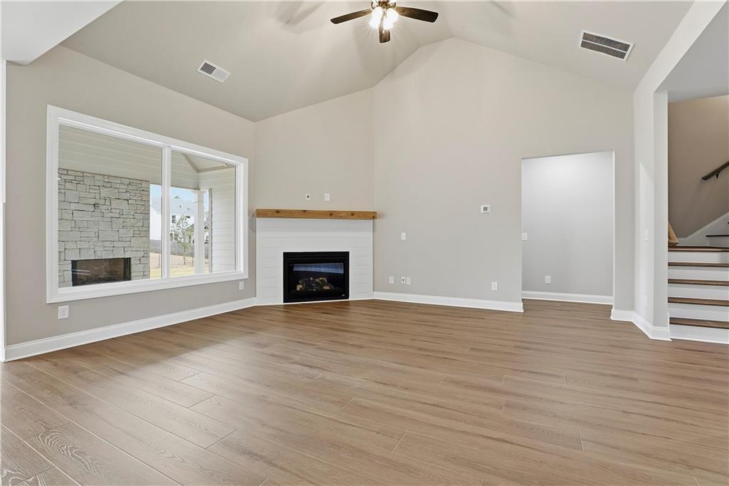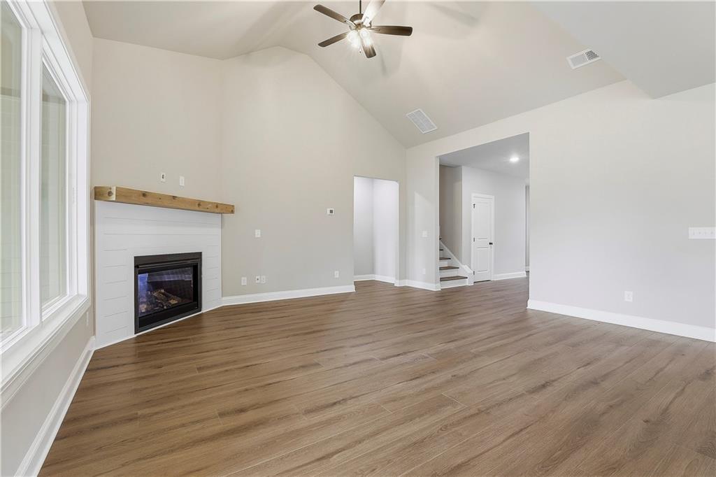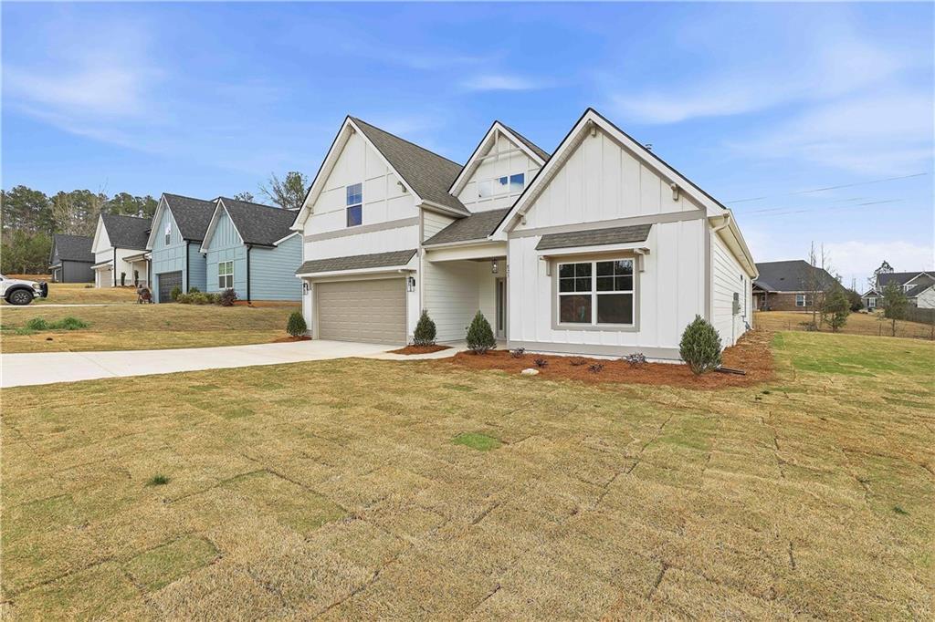 Description: Davis - 4 bedroom / 3 Bath - Primary plus one bedroom on main. Large foyer welcomes you into the home with hidden u-shaped stairway. Vaulted ceiling in great room with wood-burning fireplace. Beautiful kitchen with center island, solid-surface countertops, wall oven, walk-in pantry and over-sized breakfast dining area. Mudroom and laundry off kitchen and garage entryway that makes for a great drop zone. Primary bedroom with two vanities and walk-in shower. Upstairs has two bedrooms, each with walk-in closets, and hall bathroom. Covered back patio with fireplace. Ask about our Builder Incentives!