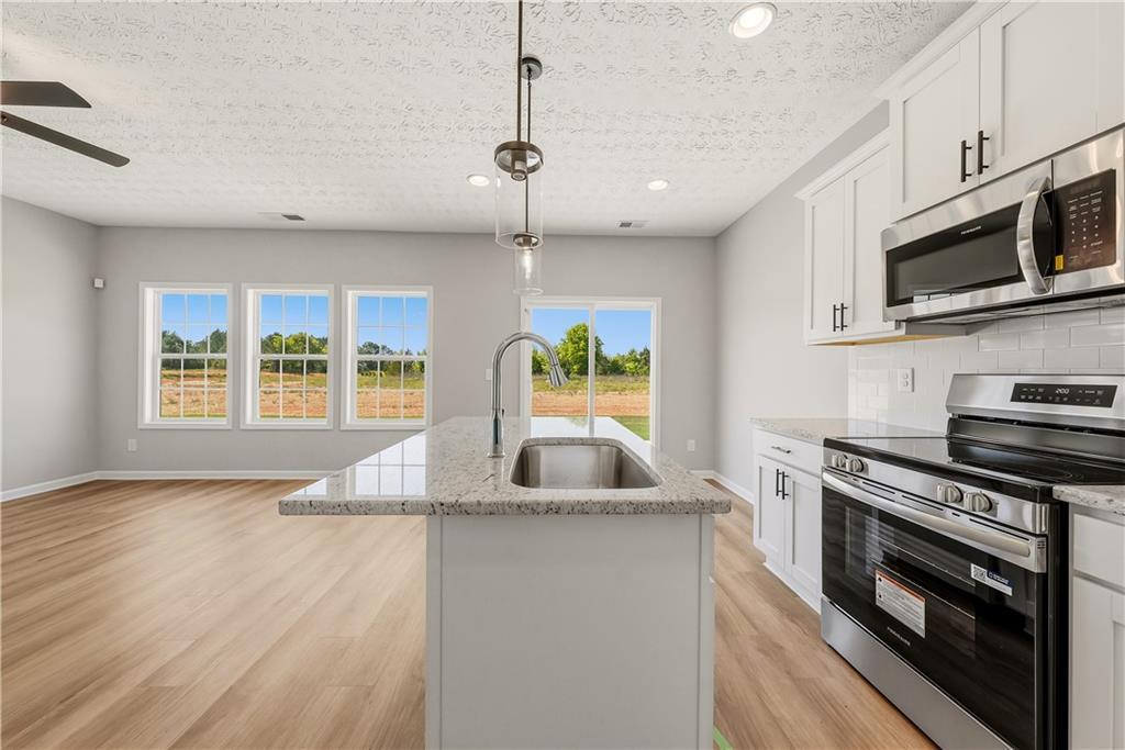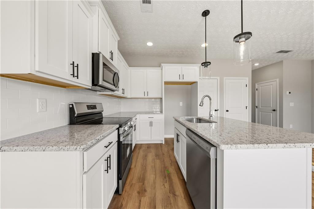 Description: The wait is over! Welcome to The Estates at Westgate Phase 8, Hughston Homes exciting new community designed for modern living! The Wren plan offers 1,449 sq. ft. of stylish, well-planned space with 3 bedrooms and 2.5 baths, perfect for anyone ready to enjoy easy, everyday comfort. Step inside to an inviting entry foyer that flows seamlessly into the spacious great room featuring an electric fireplace and ceiling fan, creating the ideal spot to unwind or host friends. The open kitchen shines with granite countertops, tile backsplash, stainless steel electric appliances, and a center island with sink and dishwasher, making it a dream for meal prep or weekend entertaining. Recessed lighting and sleek cabinetry add an upscale touch, while the dining area opens directly to your private Garden Patio, perfect for morning coffee or evening get-togethers. Upstairs, your owner’s suite is a peaceful retreat with abundant natural light, a large walk-in closet, and a private bath featuring a quartz countertop and dual sinks. Two additional bedrooms share a full hall bath, with a conveniently tucked laundry area for easy access. Luxury vinyl plank flooring flows through the living areas, blending durability with fresh design. With a 1-car garage, smart use of space, and modern finishes throughout, our Wren plan proves that comfort and style can come perfectly sized. Discover why so many are choosing The Estates at Westgate Phase 8, where fresh design meets functional living, and every detail makes coming home feel just right.