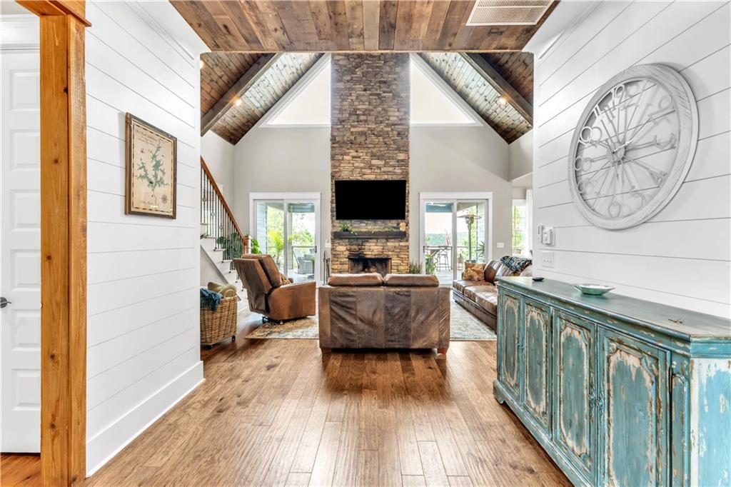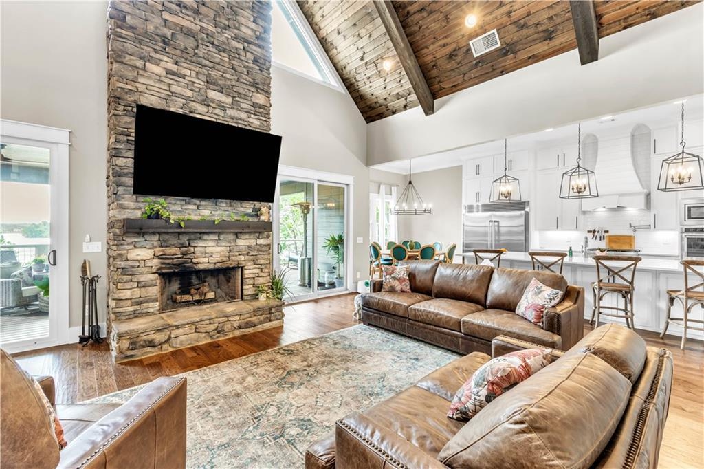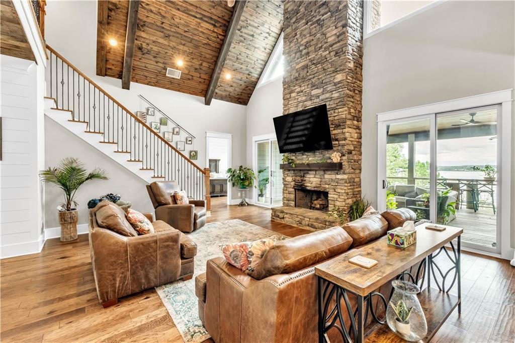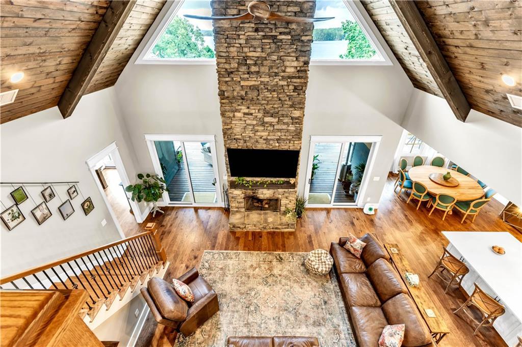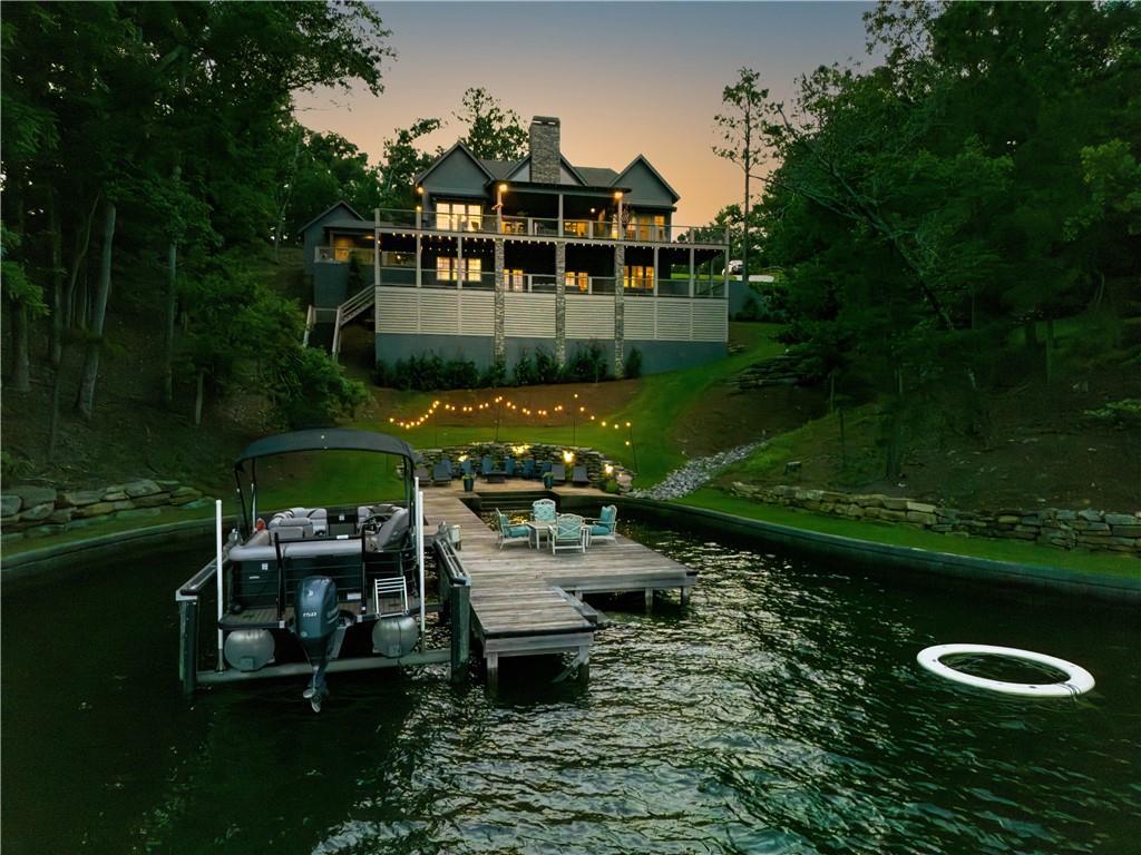 Description: Create lasting memories at this stunning Lake Martin home in The Ridge neighborhood! 100 Ridge Crest offers ample space with the best water views for family entertainment and easy access to the waterfront dock, enhanced by a new cart path. With (2) living quarters, multiple bedrooms, (4) w/ ensuite bathrooms, it's perfect for multiple couples seeking space within one home. Transition seamlessly from the main living area to the outdoor porch for grilling, entertaining, and Saturday football games by the wood burning fireplace. Year-round enjoyment was a priority in the construction of the lakeside firepit and its flagstone surround. The property is pre-wired for a hot tub spa, ensuring you may never want to leave in the winter months! The terrace level features three large bedrooms, two with stunning lake views, each equipped with walk-in closets and ensuite baths that include tiled showers with rain heads and dual vanities. This home is well-suited for full-time living, complete with a designated office workspace and an in-home gym. The spacious den area offers a kitchenette and entertainment space, and double doors lead you outside to bask in sunshine and enjoy lakeside activities on the expansive dock, which includes a boat lift and cement steps leading to a private lake inlet. On the third level, an additional guest bedroom and bath await, featuring double vanity sinks, a walk-in shower, and four full-sized built-in beds with TVs and storage, perfect for accommodating extra guests during weekend visits. More features of this remarkable home include two under-cabinet ice makers, two tankless water heaters, a gas cooktop, double ovens, foam insulation, a two-car garage, and additional parking for guests. The Ridge offers premier amenities, including a clubhouse, tennis and pickleball courts, two swimming pools, a fitness center, sidewalks that line every street and a park for the kids, all within a gated community that offers 24-hour security.