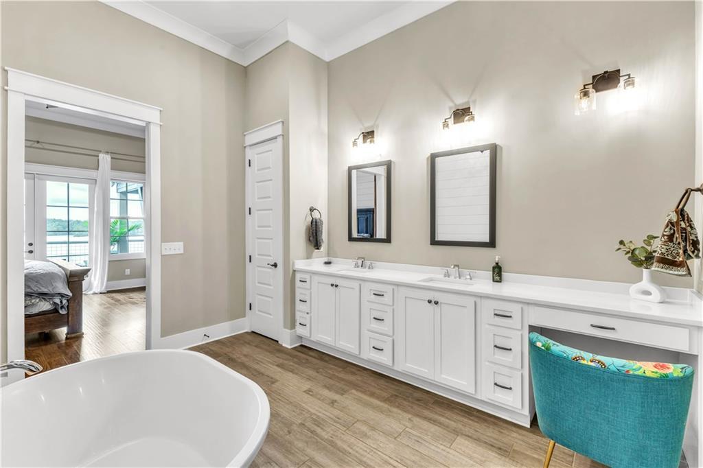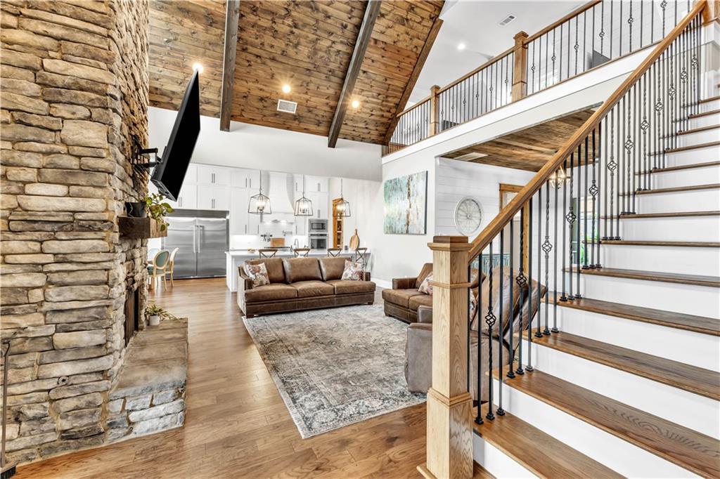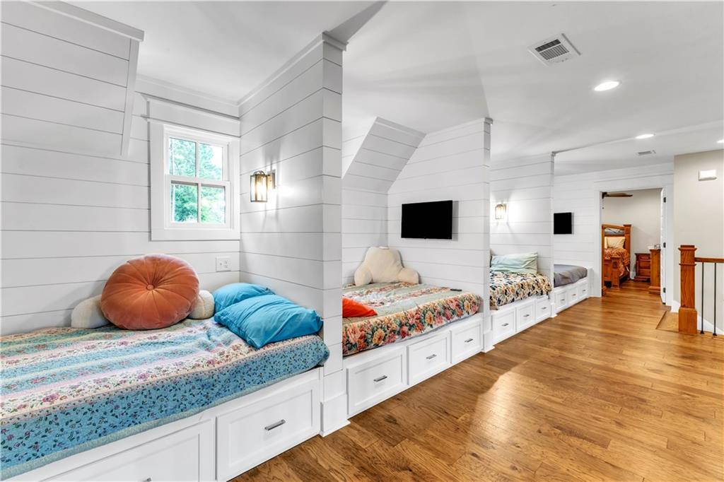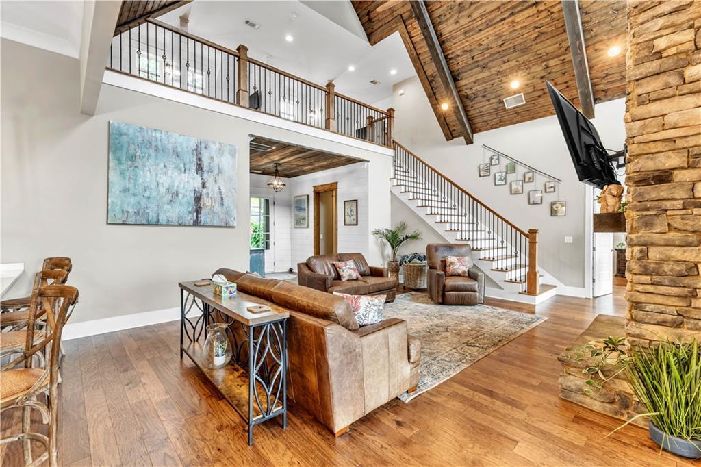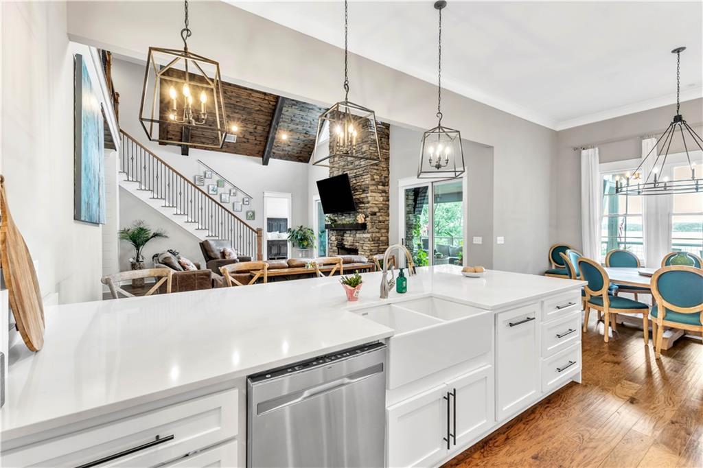Description: Create lasting memories at this stunning Lake Martin home in The Ridge neighborhood! 100 Ridge Crest offers ample space with the best water views for family entertainment and easy access to the waterfront dock, enhanced by a new cart path. With (2) living quarters, multiple bedrooms, (4) w/ ensuite bathrooms, it's perfect for multiple couples seeking space within one home. Transition seamlessly from the main living area to the outdoor porch for grilling, entertaining, and Saturday football games by the wood burning fireplace. Year-round enjoyment was a priority in the construction of the lakeside firepit and its flagstone surround. The property is pre-wired for a hot tub spa, ensuring you may never want to leave in the winter months! The terrace level features three large bedrooms, two with stunning lake views, each equipped with walk-in closets and ensuite baths that include tiled showers with rain heads and dual vanities. This home is well-suited for full-time living, complete with a designated office workspace and an in-home gym. The spacious den area offers a kitchenette and entertainment space, and double doors lead you outside to bask in sunshine and enjoy lakeside activities on the expansive dock, which includes a boat lift and cement steps leading to a private lake inlet. On the third level, an additional guest bedroom and bath await, featuring double vanity sinks, a walk-in shower, and four full-sized built-in beds with TVs and storage, perfect for accommodating extra guests during weekend visits. More features of this remarkable home include two under-cabinet ice makers, two tankless water heaters, a gas cooktop, double ovens, foam insulation, a two-car garage, and additional parking for guests. The Ridge offers premier amenities, including a clubhouse, tennis and pickleball courts, two swimming pools, a fitness center, sidewalks that line every street and a park for the kids, all within a gated community that offers 24-hour security.