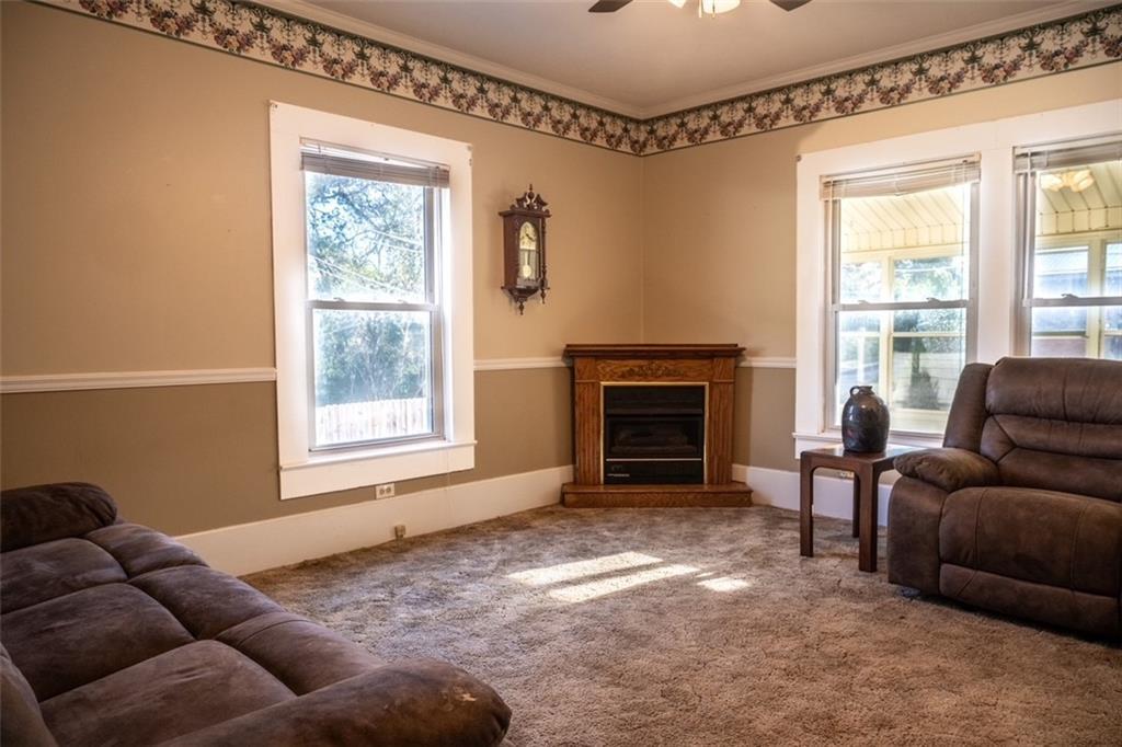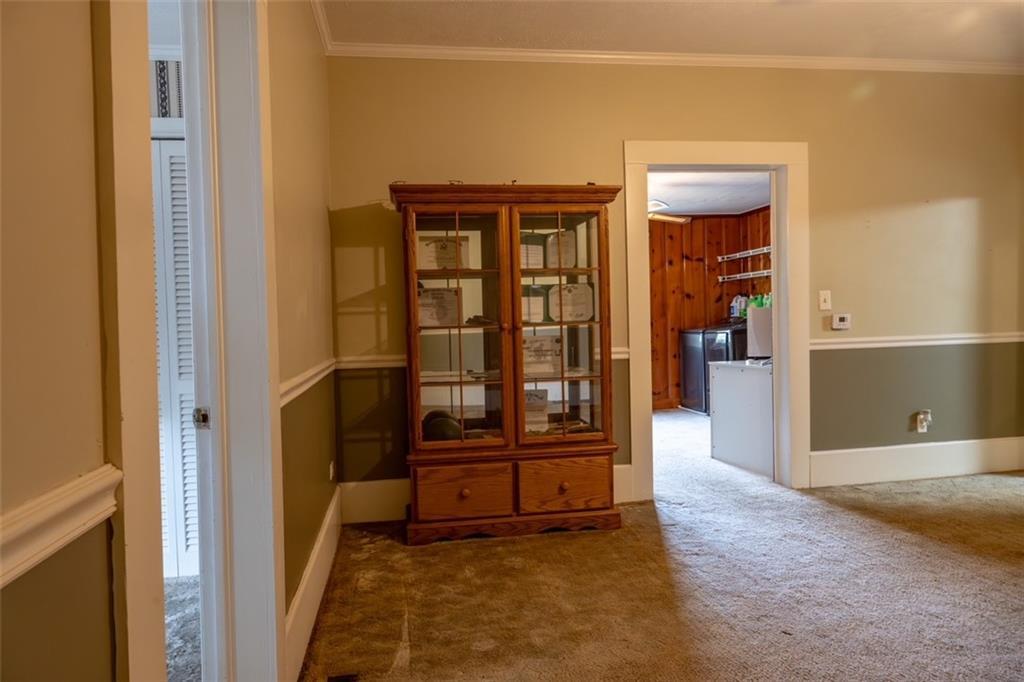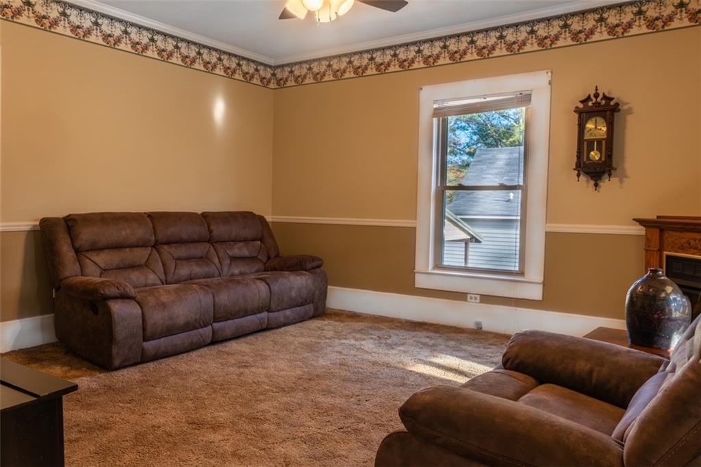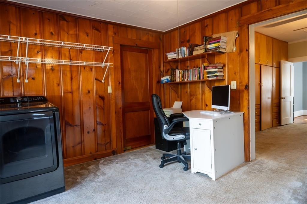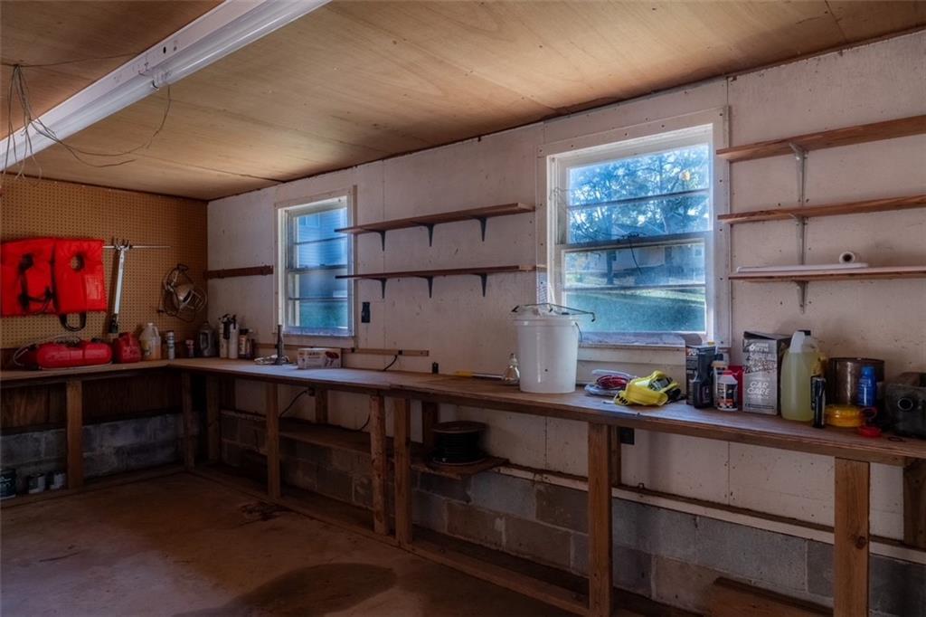 Description: Welcome to charming Craftsman style & excellent outside spaces! A great property for Investors or first Homebuyers, to make their very own! This 3 bed & 2 bath property rests on 0.37 Acres with a fenced in backyard, workshop, a carport on each side of the property & an extra-large working garage ~ creating great usable space for new owners! The cul-de-sac street is quaint, making a great resting spot. The first entry of the home is a closed in porch for relaxing or acting as a bonus area. Front door opens to a small entry, leading into the living room. Adjacent is the kitchen, with ample cabinets, double oven & new microwave. Pantry is found in a small hallway, along with a utility closet. A full bath is located close by. Beyond the kitchen is another living area with built-in cabinets, the center of the laundry & 2 bedrooms. Wood flooring has been revealed & refinished in bedroom #1 following it's redesign. Laundry room is spacious with shelving & an office area with luscious wood paneling for the walls. Stairs in the kitchen lead into the basement foundation where you'll find bathroom #2 and a bonus room with back door access to the side yard. New Roof in 2024!! Virtual Tour available of outside spaces!
