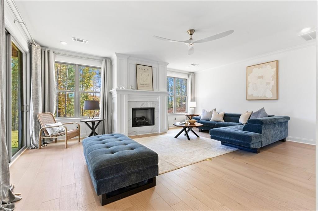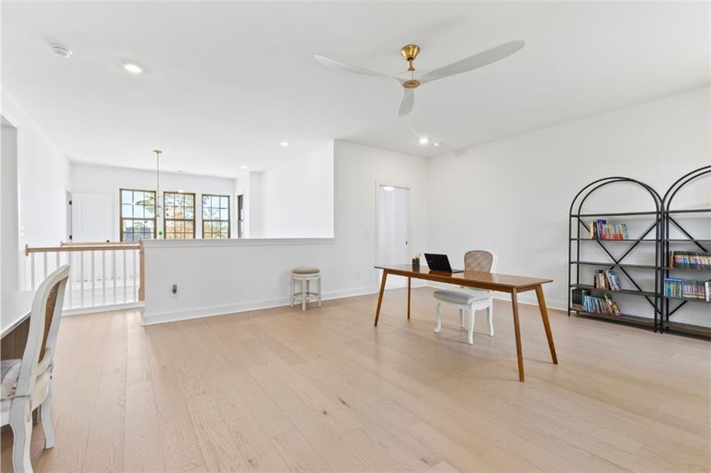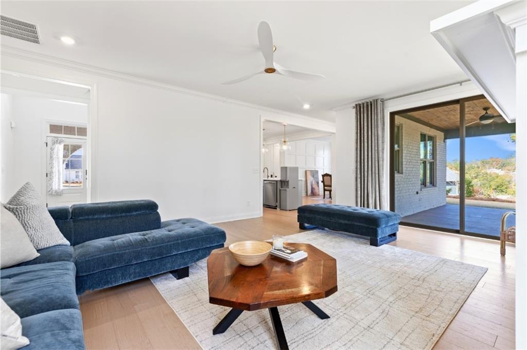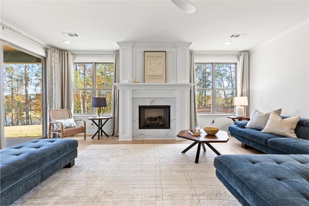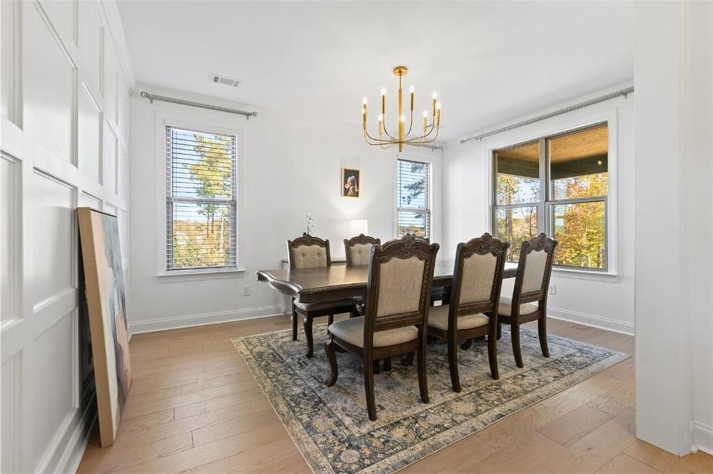 Description: Introducing this elevated home at cul de sac, overlooking the Auburn University Club golf course and the Ogletree Outing Club Lake—one of Auburn’s most impressive view properties. Mature trees frame the exterior, while expansive rear windows and a covered patio showcase panoramic lake and golf vistas. Inside, the foyer opens to a staircase positioned to the left, thoughtfully placed to provide privacy for the main living areas. Stepping into the living room, the stunning lake and fall colored woody views immediately command attention through wide windows and sliding doors. A gas-log fireplace anchors the space, complemented by white walls, stylish fixtures, and natural 7” oak hardwood floors. The Gourmet kitchen features quartz countertops, a single wall oven, and a white cast-iron farmhouse sink, all designed for both beauty and function. The main-level primary suite offers a serene retreat with generous light and a spa-inspired bath that includes a pedestal tub, frameless glass shower, and quartz finishes. Upstairs, a spacious loft serves as a second living room with dramatic lake views. Three large bedrooms complete the level—one with a private en-suite bath and two sharing a well-appointed full bathroom. Abundant windows throughout the home ensure continuous views of the lake, forest, and golf course, creating a lifestyle defined by comfort, elegance, and connection to nature.