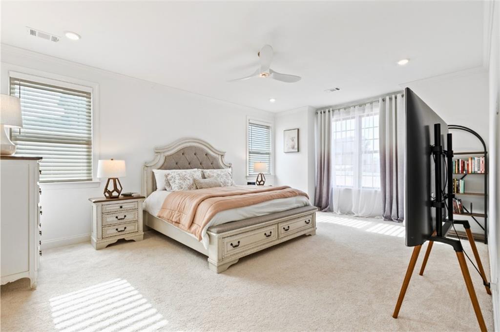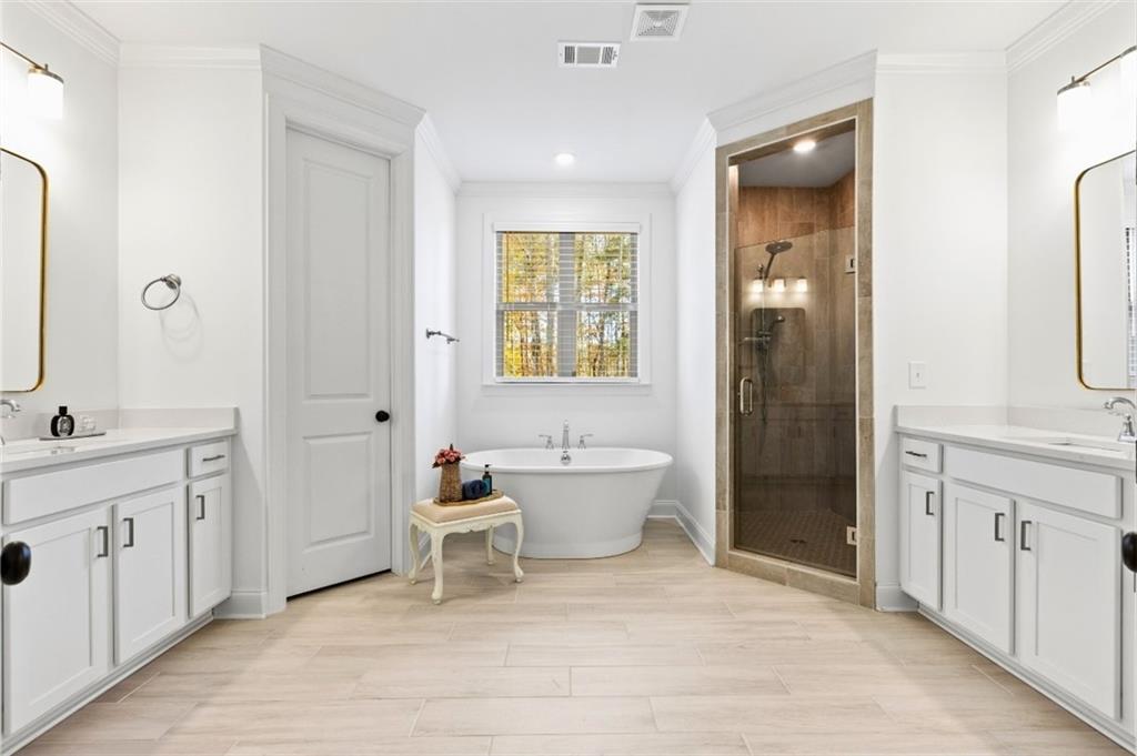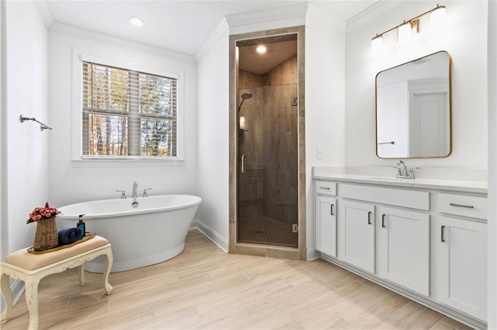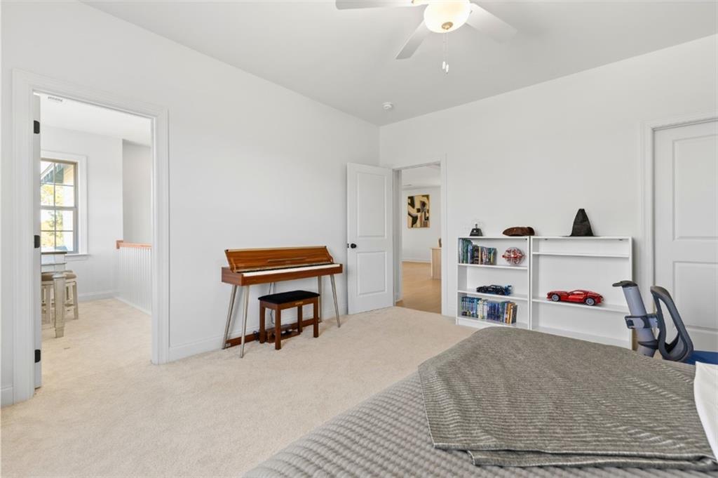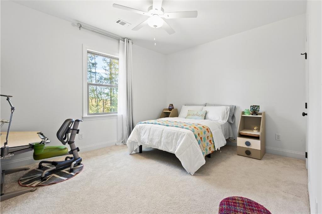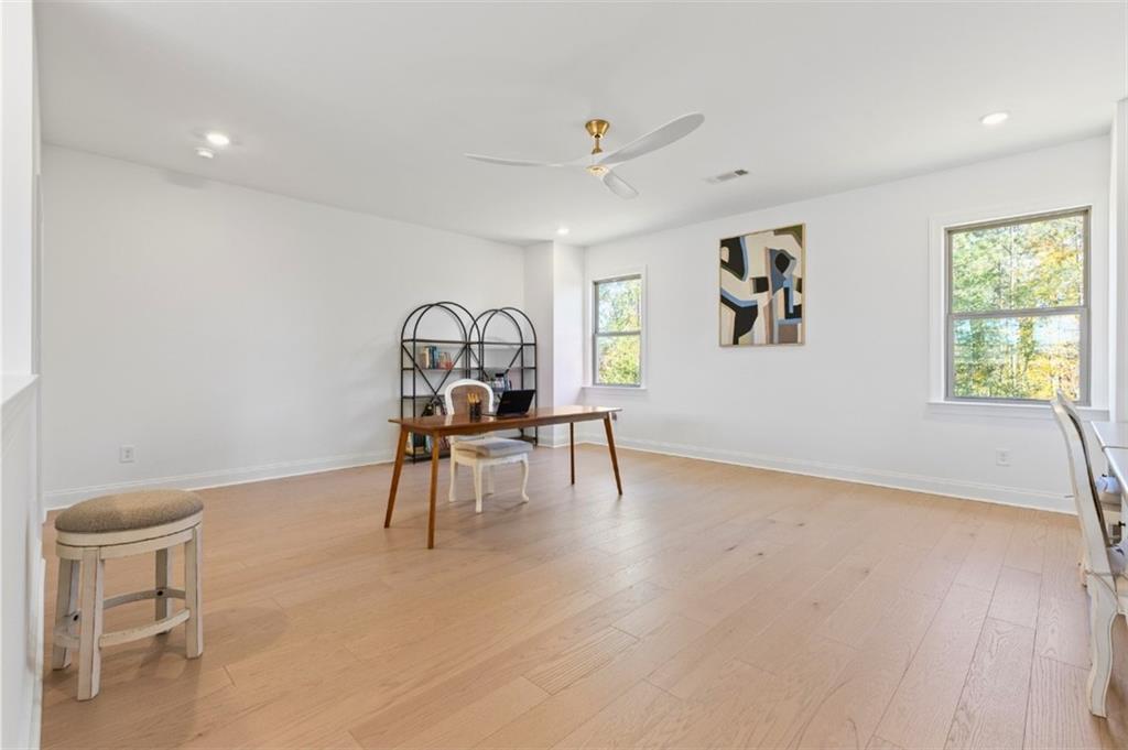 Description: Introducing this elevated home at cul de sac, overlooking the Auburn University Club golf course and the Ogletree Outing Club Lake—one of Auburn’s most impressive view properties. Mature trees frame the exterior, while expansive rear windows and a covered patio showcase panoramic lake and golf vistas. Inside, the foyer opens to a staircase positioned to the left, thoughtfully placed to provide privacy for the main living areas. Stepping into the living room, the stunning lake and fall colored woody views immediately command attention through wide windows and sliding doors. A gas-log fireplace anchors the space, complemented by white walls, stylish fixtures, and natural 7” oak hardwood floors. The Gourmet kitchen features quartz countertops, a single wall oven, and a white cast-iron farmhouse sink, all designed for both beauty and function. The main-level primary suite offers a serene retreat with generous light and a spa-inspired bath that includes a pedestal tub, frameless glass shower, and quartz finishes. Upstairs, a spacious loft serves as a second living room with dramatic lake views. Three large bedrooms complete the level—one with a private en-suite bath and two sharing a well-appointed full bathroom. Abundant windows throughout the home ensure continuous views of the lake, forest, and golf course, creating a lifestyle defined by comfort, elegance, and connection to nature.
