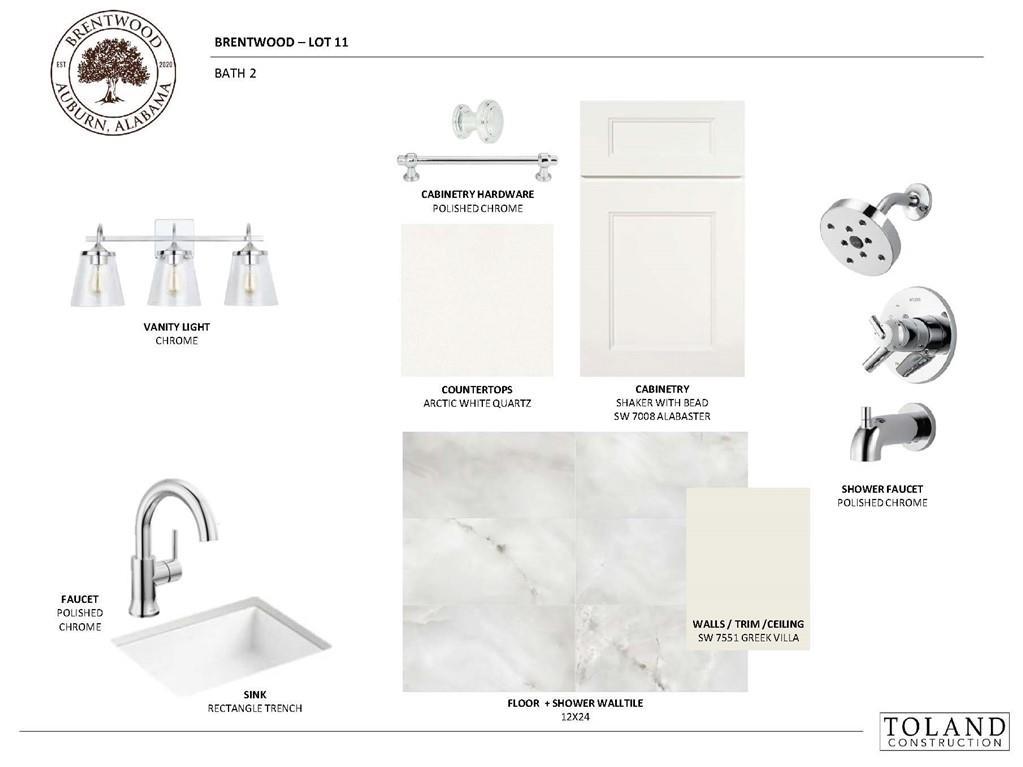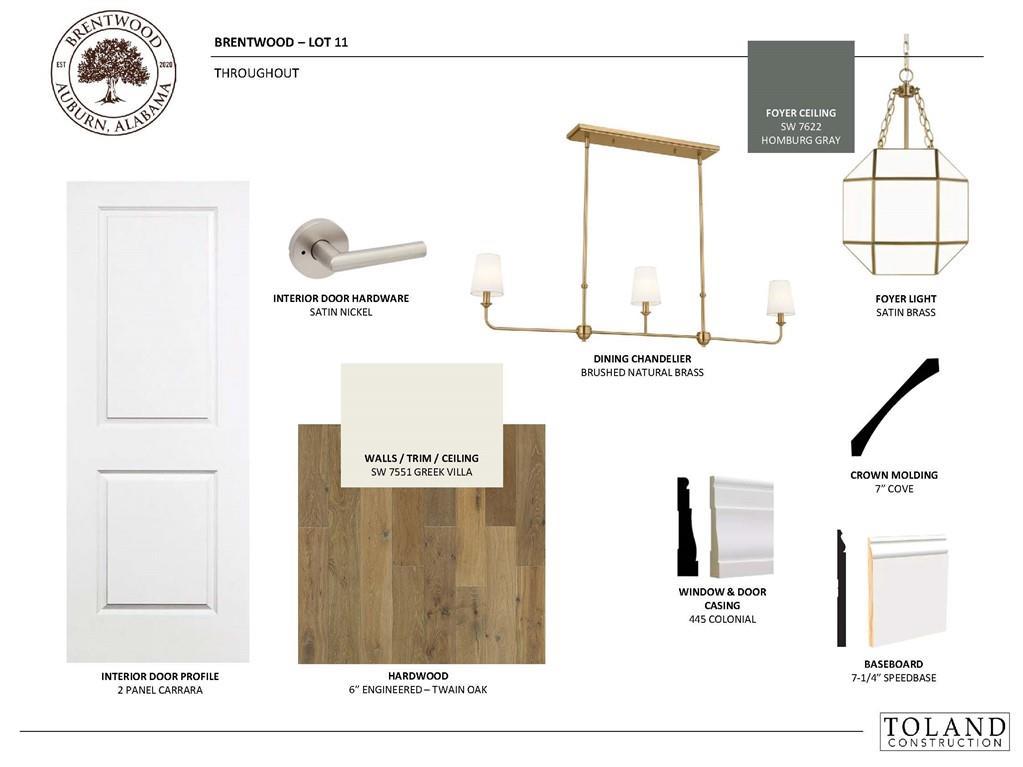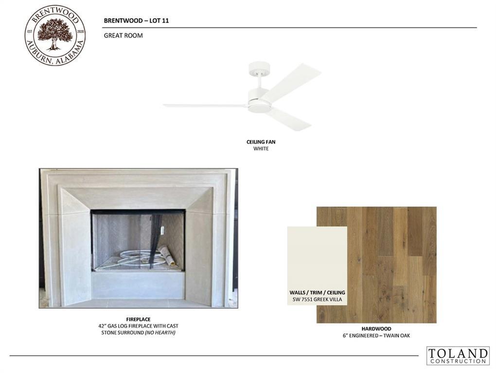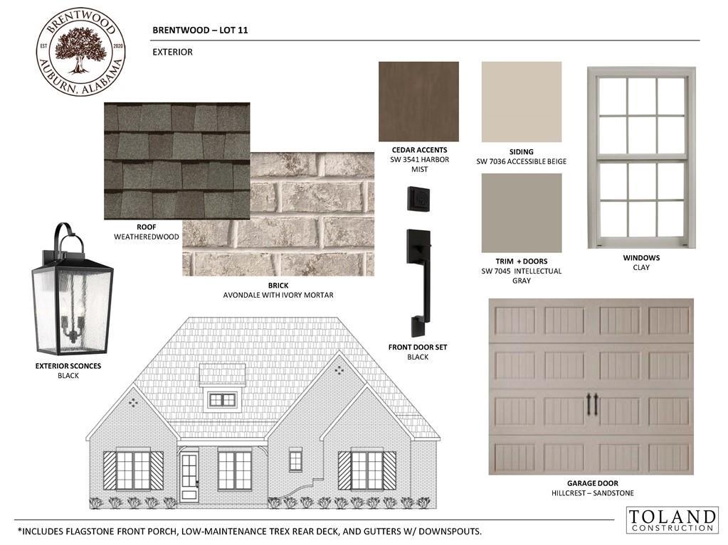 Description: The Aspen Plan offers exceptional curb appeal with a full brick exterior, warm cedar accents, a charming knee wall, and a courtyard-entry garage. This versatile design includes four bedrooms, a bonus room, and a dedicated study accessed from the foyer through French doors. At the front of the home, the formal dining room connects to the kitchen via a well-appointed butler’s pantry. The kitchen and great room combine to create a spacious gathering area anchored by a cast stone fireplace. Both the kitchen and butler's pantry are finished with custom cabinetry and marble countertops. The main level primary suite is thoughtfully designed with a sizable bedroom, zero-entry, floor-to-ceiling frameless walk-in shower, an expansive double vanity, a water closet, & a generous walk-in closet with custom wood shelving. The closet opens directly to the laundry room, which includes custom cabinetry and a convenient secondary entrance at the owner’s entry. Two additional main-level bedrooms—each with hardwood flooring—and a full bath add to the home’s flexibility. Upstairs, a large landing/bonus room—ideal for a playroom, media space, or gym—leads to a private bedroom suite, perfect for guests or a quiet retreat. Outside, a covered Trex deck provides an exceptional space for outdoor living and entertaining. Brentwood’s location is hard to beat, offering immediate access to I-85 and close proximity to Tiger Town, Saugahatchee Country Club, local schools, and both downtown Auburn and Opelika.