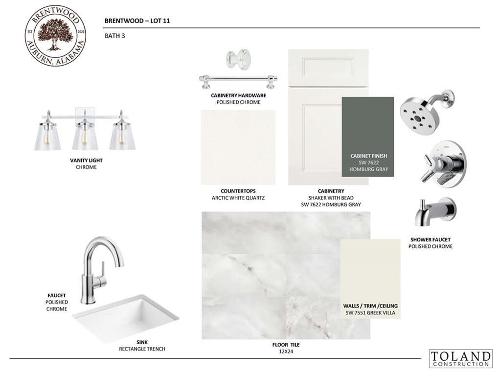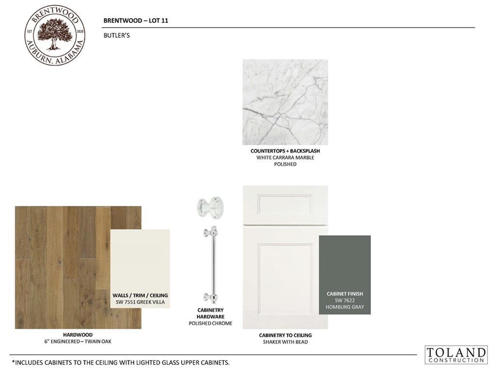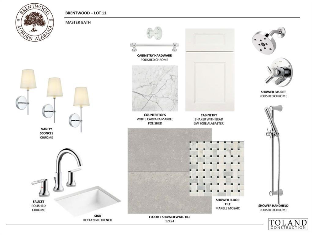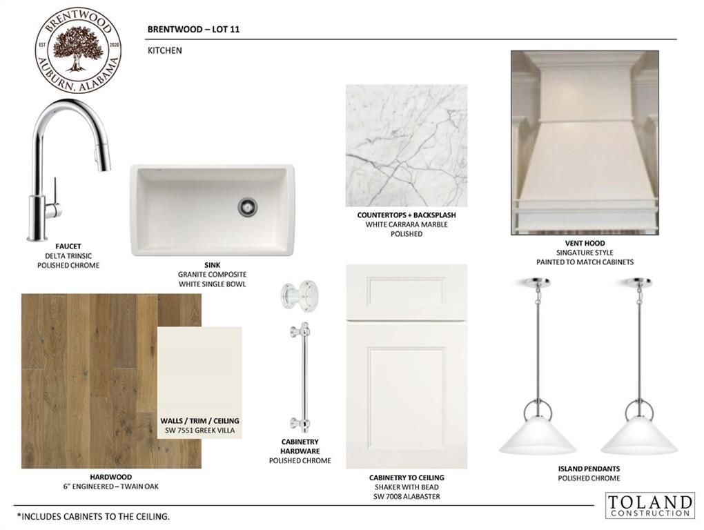 Description: The Aspen Plan offers exceptional curb appeal with a full brick exterior, warm cedar accents, a charming knee wall, and a courtyard-entry garage. This versatile design includes four bedrooms, a bonus room, and a dedicated study accessed from the foyer through French doors. At the front of the home, the formal dining room connects to the kitchen via a well-appointed butler’s pantry. The kitchen and great room combine to create a spacious gathering area anchored by a cast stone fireplace. Both the kitchen and butler's pantry are finished with custom cabinetry and marble countertops. The main level primary suite is thoughtfully designed with a sizable bedroom, zero-entry, floor-to-ceiling frameless walk-in shower, an expansive double vanity, a water closet, & a generous walk-in closet with custom wood shelving. The closet opens directly to the laundry room, which includes custom cabinetry and a convenient secondary entrance at the owner’s entry. Two additional main-level bedrooms—each with hardwood flooring—and a full bath add to the home’s flexibility. Upstairs, a large landing/bonus room—ideal for a playroom, media space, or gym—leads to a private bedroom suite, perfect for guests or a quiet retreat. Outside, a covered Trex deck provides an exceptional space for outdoor living and entertaining. Brentwood’s location is hard to beat, offering immediate access to I-85 and close proximity to Tiger Town, Saugahatchee Country Club, local schools, and both downtown Auburn and Opelika.