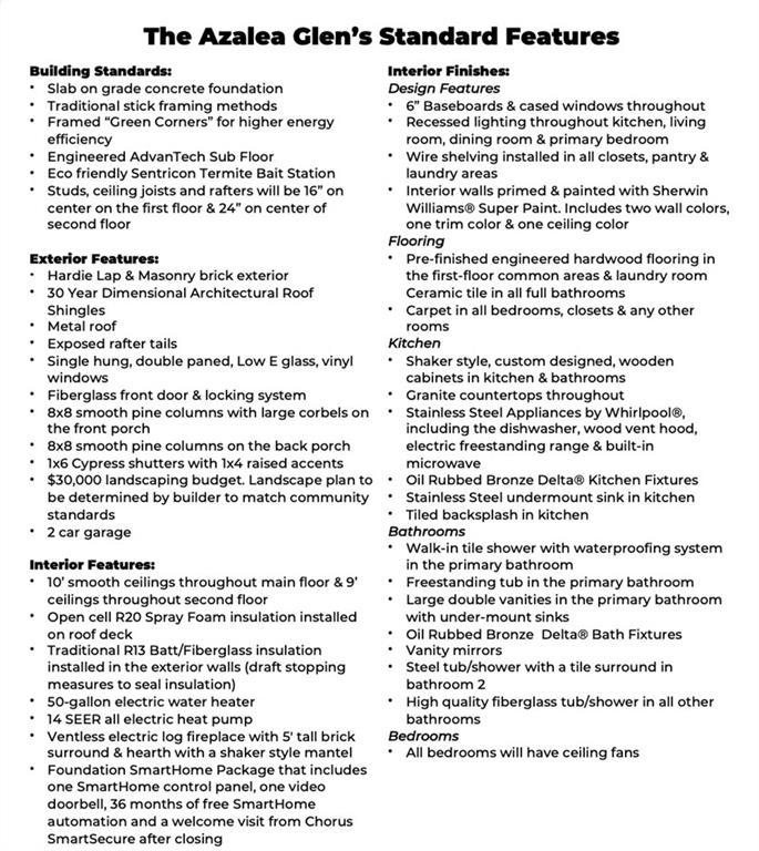 Description: Buildable plan on available lot! Hunters Hill is a 22 lot community with lots starting at 3 acres. The Azalea Glen built by Holland Homes LLC is 5 bed, 4 bath, and spans 3,111sqft. The great room is spacious with 10ft ceilings, wood floors & an electric fireplace. It opens into the dining room and gourmet kitchen. The kitchen features a large center island with bar seating & a pantry. Off of the kitchen is a covered back porch. The owner's retreat has 2 large walk-in closets and an en-suite with a linen closet, walk in shower, & soaking tub. The main level also has a 4th bedroom with a full bath that can be used as a guest suite or study. The upper level has 3 more bedrooms, 2 bathrooms & a bonus room. Bedrooms 2 & 3 share a Jack-n-Jill bath, and bedroom 5 has private bath. Other plans available. $40,749 Lot premium for lot 12 is included in price shown. Lot premiums may vary per lot. Points of interest: Moore's Mill park, walking trails, playgrounds and picnic areas! Close proximity to Auburn University, 4.5 miles to Jordan Hare Stadium!