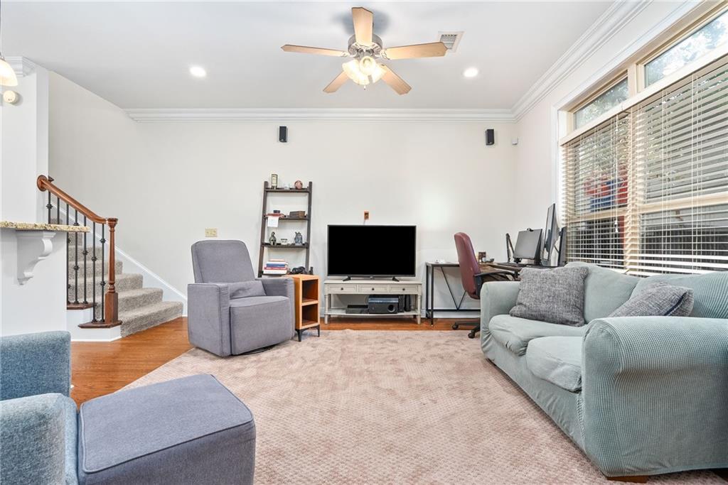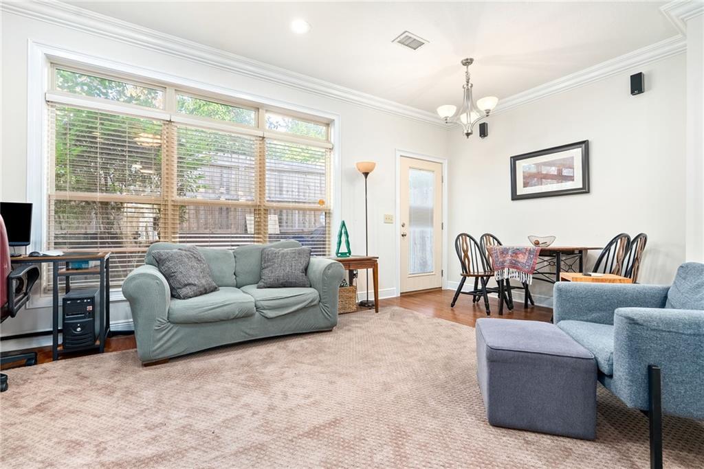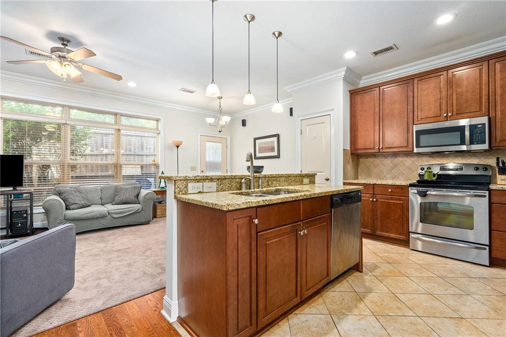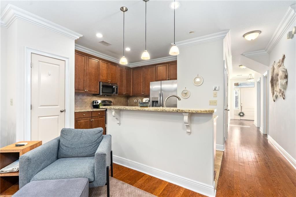 Description: Imagine starting your mornings with a quick walk to grab coffee around the corner, strolling into downtown for shopping or dinner, and feeling the buzz of Auburn game days right outside your doorstep. This spot puts you in the middle of all the good stuff while still giving you a quiet place to retreat. The main level begins with a tiled entryway that leads past a powder room and coat closet before opening into a bright, open kitchen, dining, and living area. The kitchen features granite countertops, stainless steel appliances, a pantry, and a large island that doubles as an eat-in bar—ideal for everyday living or hosting friends. Upstairs, both bedrooms offer walk-in closets (the primary has two!) and private en suite baths. The hallway brings a surprising amount of storage, including a stacked washer/dryer closet, an additional clothing closet, a spacious linen closet, and pull-down attic access. The COA keeps life simple by handling landscaping, pressure washing, parking lot maintenance, exterior pest control, and annual termite inspections. Low-maintenance living in the heart of Auburn—right where you want to be.