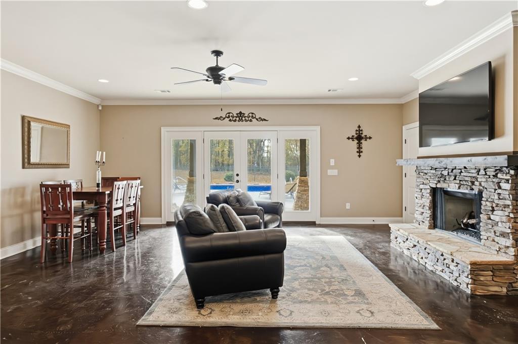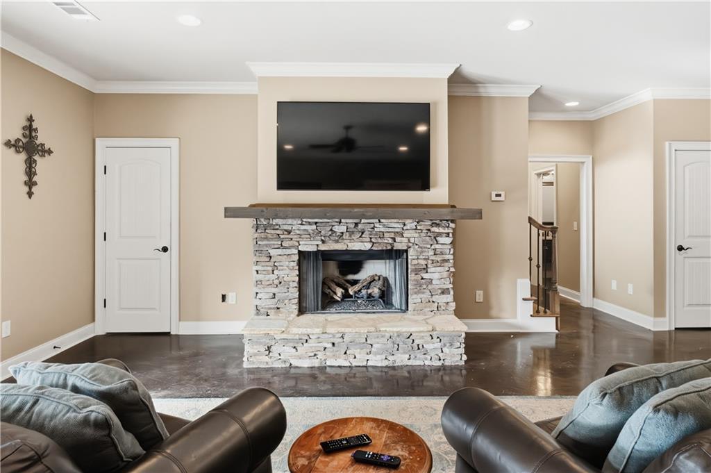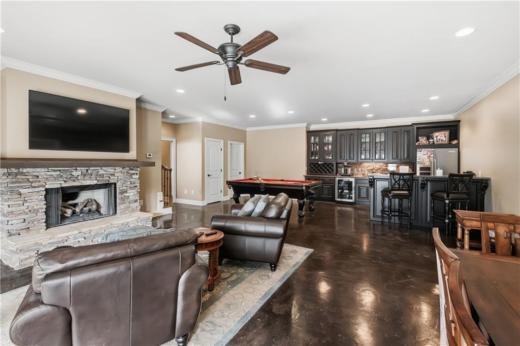 Description: Luxury 3-acre estate built by renowned Michael Allen Homes with 5,000+ sq.ft. of exceptional craftsmanship and over $66K in updates since Oct. 2024. Timeless brick & stone exterior opens into a grand foyer with office/flex room on one side and formal dining on the other. Spacious living room features a gas fireplace and flows into an impressive kitchen with barrel ceiling, large island, gas cooktop, pull-out spice drawers, convection oven/microwave combo, breakfast area and custom Van Nostrand cabinetry. Just off the kitchen is the newly redone screened-in porch (Oct. 2025) with new columns, decking, screening + wood-burning fireplace. A second oversized deck is accessible from both the living room and primary suite, complete with a swing bed and beautiful views of the pool and backyard. Primary suite offers abundant natural light and spa-like ensuite with jetted tub, oversized walk-in shower, dual vanities and extensive storage. Upstairs bonus room may function as a bedroom or media room with infinite potential . Terrace level lives like its own residence with stained concrete floors, large living room + gas fireplace, full kitchenette, wet bar, pool table area, half bath, gym/office, one ensuite bedroom w/ walk-in closet and two additional bedrooms connected by a Jack-and-Jill bath. Outdoor oasis features a stunning pool with NEW Cool Deck (Nov. 2025) designed to stay cool under summer heat, plus newer liner, pump and chlorinator system. Property includes a 3-car garage with new poly floors, spray foam insulation, tankless water heater, buried propane tank, central vacuum, 4-zone HVAC (primary, main, bonus, basement), 9-zone Rain Bird irrigation, tinted windows in basement & primary suite, and extensive landscape lighting. Abundant storage throughout. A rare opportunity to own a private Auburn estate offering luxury, function, and year-round outdoor living at an exceptional level.