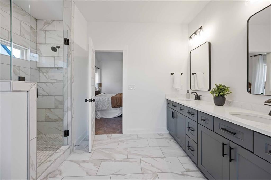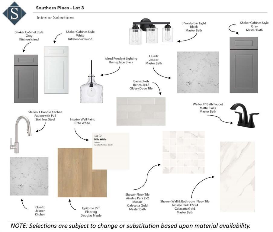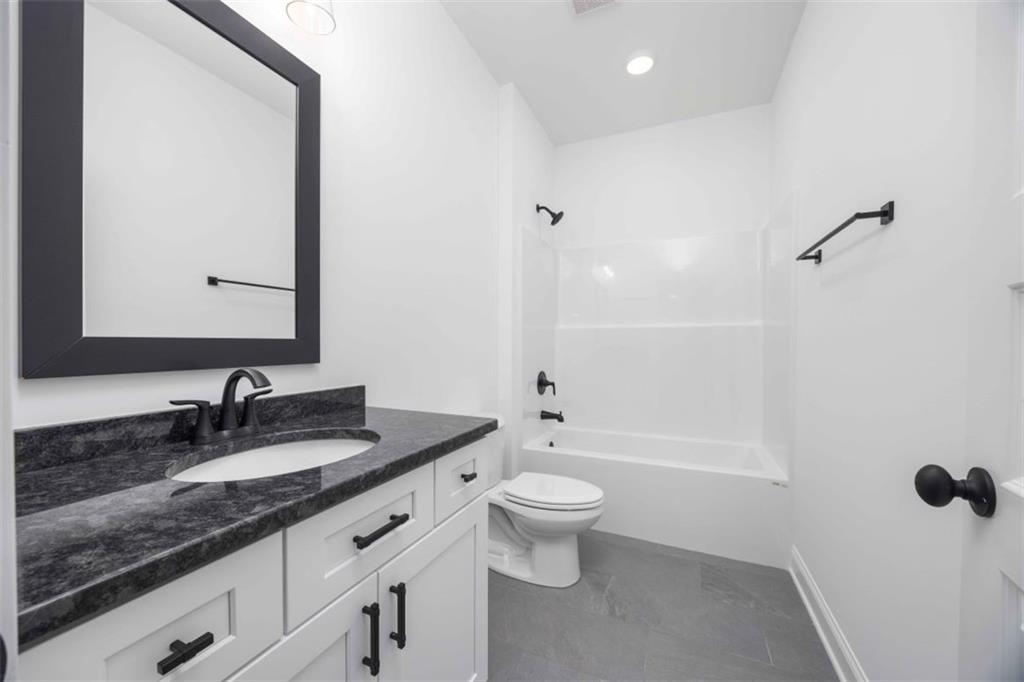 Description: This home offers a crisp, modern feel with a layout that keeps everything open, bright, and functional. The heart of the home is the kitchen, featuring a charcoal-blue island with X-panel detailing, white quartz countertops, shaker cabinetry, clear glass pendants, and a subway tile backsplash. The kitchen blends effortlessly into a generous living area wrapped in natural light and centered by a tall, custom-trimmed fireplace with a soft-washed brick surround. Wide-plank flooring brings warmth throughout the main spaces and ties the entire design together. The dining area sits right off the kitchen, creating a smooth flow for everyday living and entertaining. Large windows frame backyard views and add even more natural light across the main level. The covered back porch offers a shaded outdoor retreat with a ceiling fan and room to relax or grill. The primary suite features a vaulted ceiling, plush new carpet, and multiple windows for a bright, calming atmosphere. The en-suite bath includes a soaking tub, a fully tiled walk-in shower with frameless glass, dual vanities, and modern black fixtures. The walk-in closet provides generous shelving and storage. Secondary bedrooms are well-sized with fresh carpet, and the additional baths continue the home’s clean, neutral palette with stone-look tile and dark hardware. A dedicated laundry room with tile flooring adds convenience and functionality. Outside, the home showcases a light brick exterior paired with gables, clean trim lines, and fresh landscaping. The fenced backdrop and wide concrete patio create a welcoming outdoor space with room to play or entertain. This home delivers a balanced mix of comfort, style, and practicality... move-in ready and designed for easy everyday living. This is the McQueen Plan. https://bcstonehomes.com/plan/mcqueen-b-brick