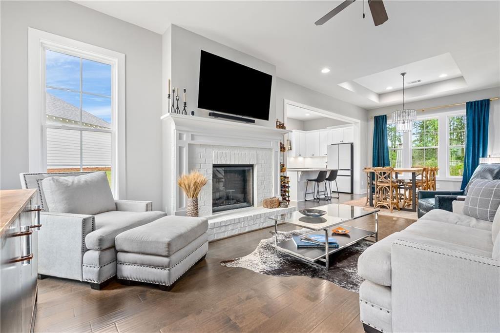 Description: Welcome home to this 5 bedroom 3.5 bath Former Model/Designer Home situated in the IDEAL location of Owens Crossing! Less than 2 miles from Auburn University/downtown. This home features high-end, luxury finishes. The living room includes brick fireplace & ample windows that allow natural light to fill the home. Kitchen has granite countertops, large island, tile backsplash & stainless appliances. The open concept floor plan is completed by a dining area. Primary retreat on the main level includes DOUBLE walk in closets, tile shower & dual vanities. The master was thoughtfully designed to connect to the laundry which boasts great cabinet space. Upstairs features 4 bedrooms as well as an OVERSIZED bonus room. AMAZING outdoor living has been added to this home with a covered back porch & added seating area with ample room for gameday activities! Backyard is VERY private & fenced. You will NOT want to miss out on this home with ALL THE EXTRAS!! **PureChoice Reverse Osmosis Drinking water system at kitchen sink and water line to refrigerator will remain** **All custom Rockwood blinds will remain**