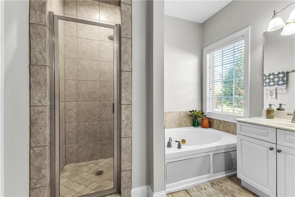 | Interior | Ceiling Fans, Jetted Tub, Primary Bedroom Downstairs, Security System, Washer/Dryer Connection, Window Tr |