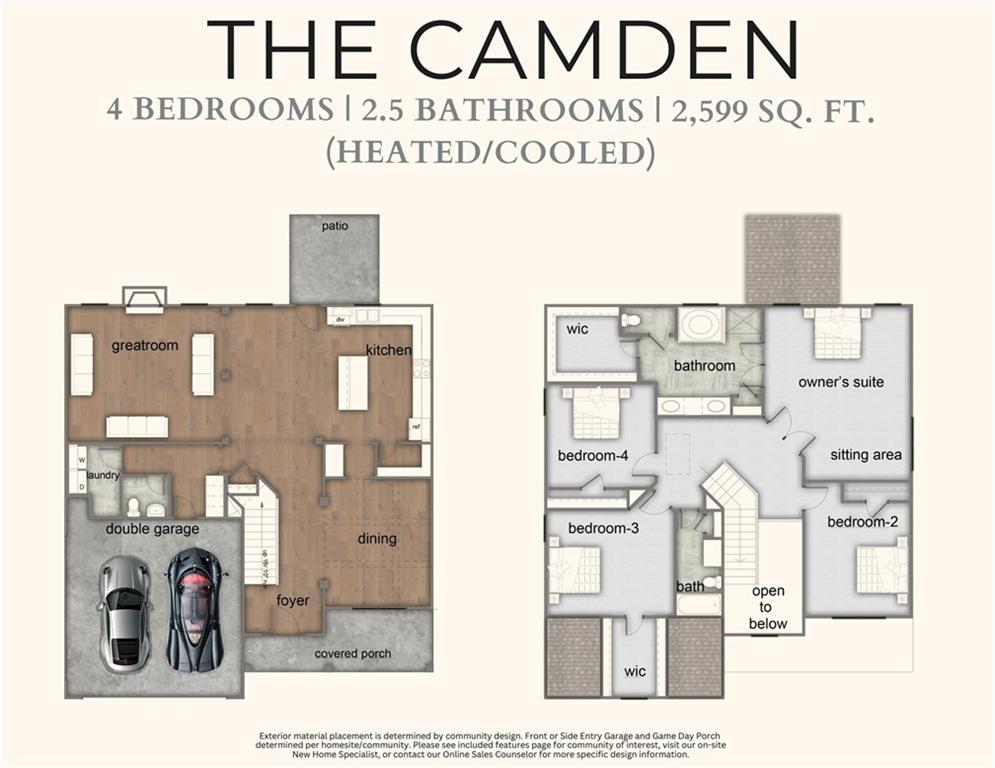 Description: Discover The Landings at Academy Drive, a premier Hughston Homes community ideally situated just off Academy Drive in Auburn, Alabama. Welcome to the Camden A plan, one of our most popular floorplans, offering 4 spacious bedrooms, 2.5 baths, and 2,599 sq. ft. of thoughtfully designed living space. Step into a soaring 2-story foyer and be greeted by a formal dining room featuring elegant, coffered ceilings and wainscoting. The spacious great room centers around a cozy gas fireplace and flows seamlessly into the gourmet kitchen, which boasts custom cabinetry, granite countertops, a beautifully tiled backsplash, built-in stainless-steel appliances, a gas cooktop, a wall oven/microwave combo, an upgraded dishwasher, and a stainless-steel vent hood. A large island overlooks the breakfast area and great room, perfect for entertaining. The oversized walk-in pantry offers abundant storage and can be upgraded to include a butler’s pantry. A signature drop zone with built-in cubbies, plus a tucked-away half bath and laundry room, adds convenience and function. Upstairs, retreat to the expansive owner’s suite with double-door entry, abundant natural light, a sitting area, ceiling fan, and luxurious bath featuring a tile shower, garden tub, double quartz vanity, and massive walk-in closet. Three additional bedrooms offer generous closets and natural light, with a centrally located full bath. Enjoy outdoor living on our signature Gameday patio, complete with a wood-burning fireplace, ceiling fan, and speakers. Additional features include LVP flooring in main areas, spray foam insulation, a gas tankless water heater, 2” blinds on the front windows, and a 2-car garage. Quality craftsmanship and designer touches set this home apart! With elevated finishes, a functional, friendly layout, and an unbeatable Auburn location near Lee-Scott Academy, Auburn High School, and premier shopping, The Landings at Academy delivers luxury living at its best.