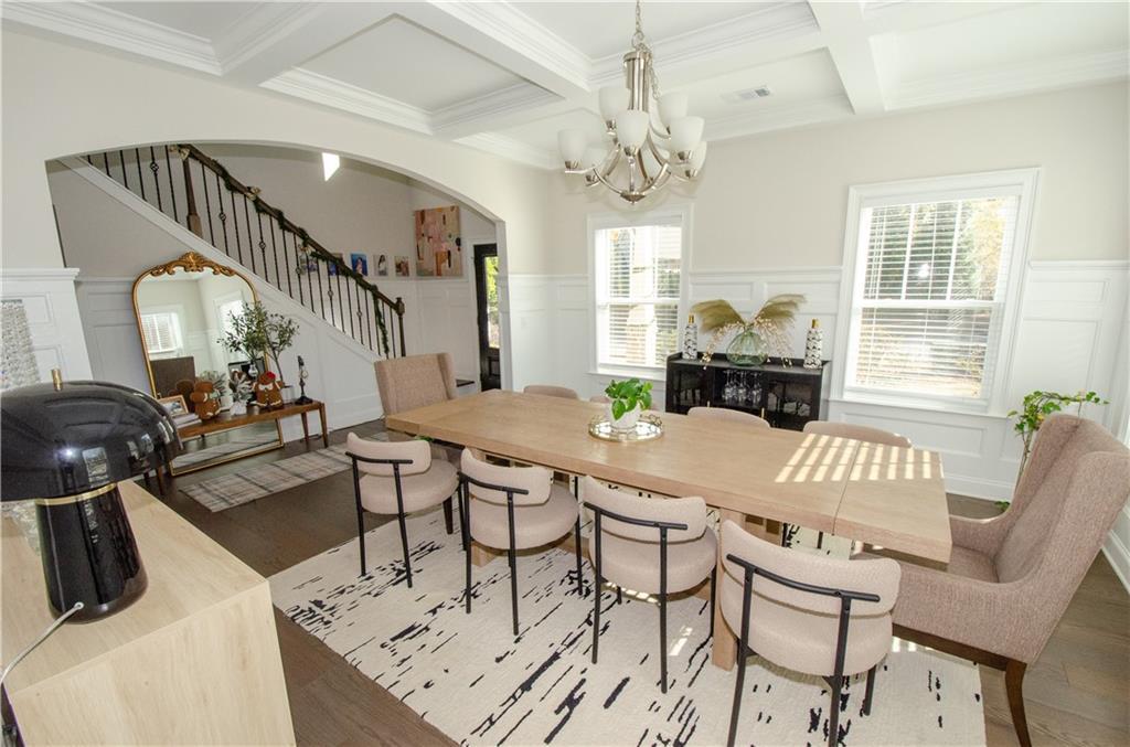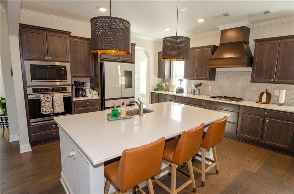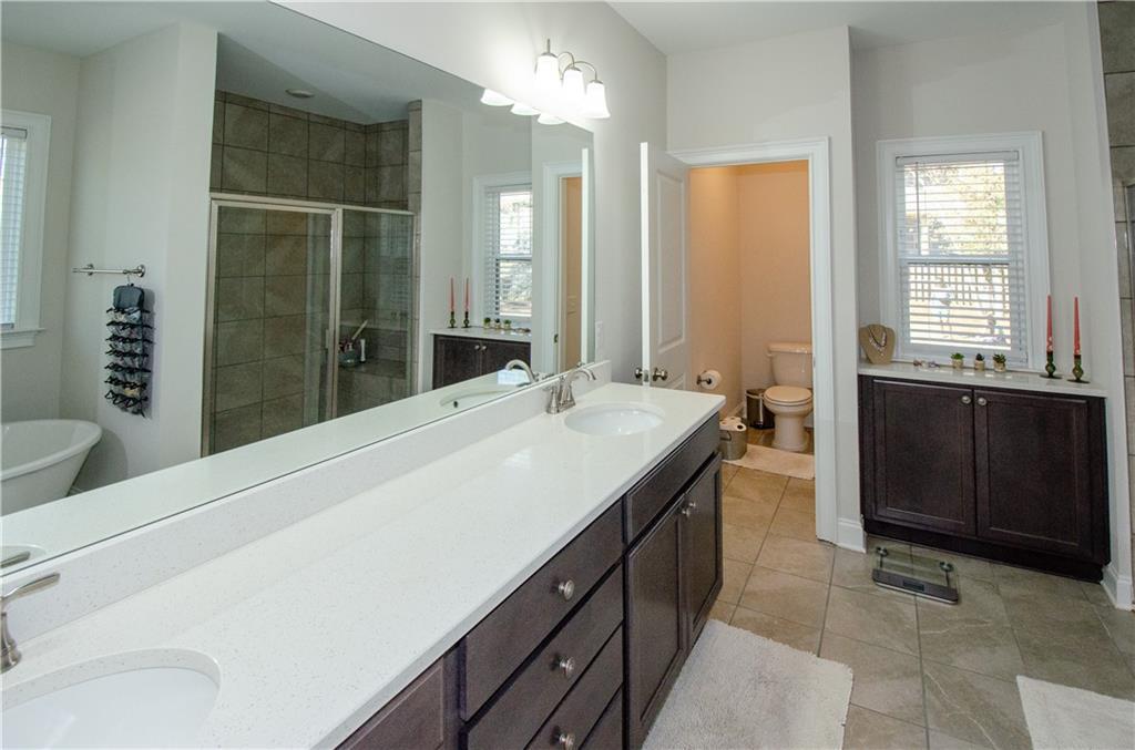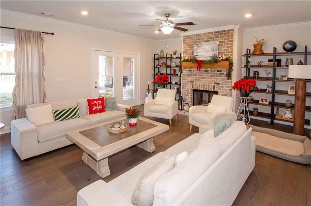 Description: If you're thinking like new, don't miss this beautiful home. This homes welcomes you with all the southern charm you can imagine. Entering the front door one immediately notices the large dining room with coffered ceiling and judges paneling. From there is the open concept gourmet kitchen which features a fully functioning island, gas cooktop, quartz counter tops, and tiled backsplash. Off the kitchen you'll find a breakfast area open to the family room which features a fireplace with cedar mantle. Also featured on the main level is the master bedroom, laundry and powder room. The master bath features a spa inspired feeling with double vanities, separate shower and tub. There are three bedrooms upstairs with two full bathrooms, and a large media area. Outside is a fun day porch with a wood burning fireplace and a rear load two car garage. This is an amazing home that you'll have to see.